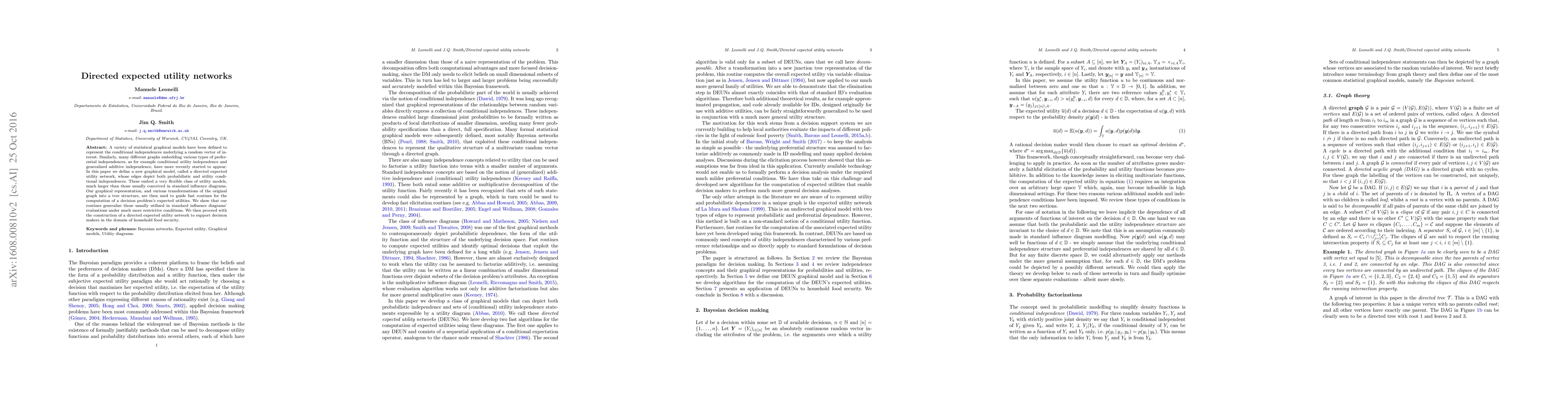 This paper introduces a new graphical model called directed expected utility networks, which represent both probabilistic and utility conditional independences. The model facilitates efficient computation of expected utilities in decision problems, generalizing standard influence diagrams, and is applied to support decision-making in household food security.