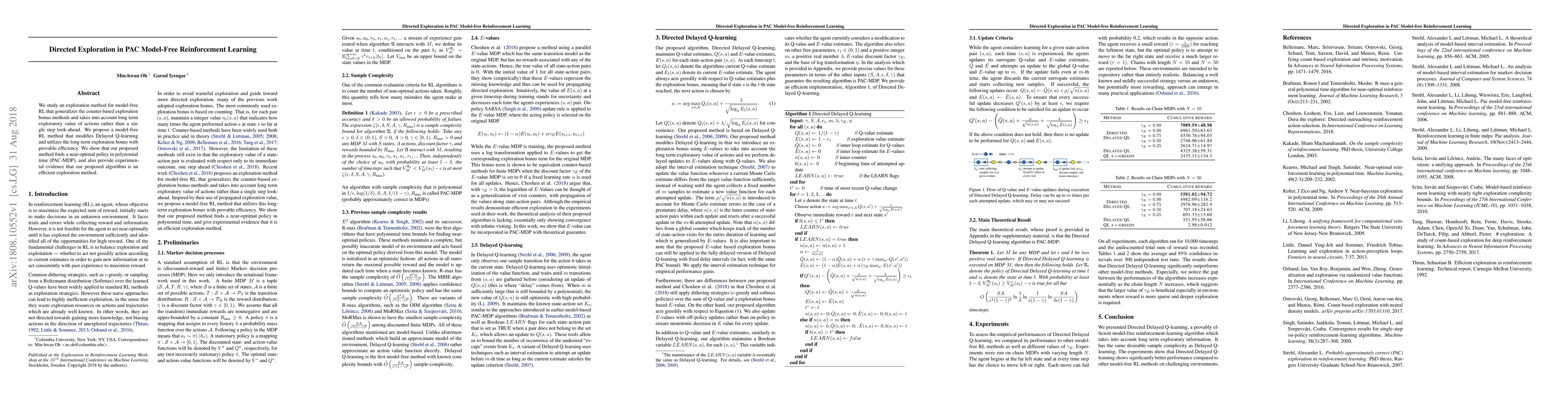 This paper proposes a novel exploration method for model-free reinforcement learning, extending counter-based exploration bonuses to consider long-term action values. The method modifies Delayed Q-learning and achieves near-optimal policies in polynomial time within the PAC-MDP framework, supported by efficient empirical results.
