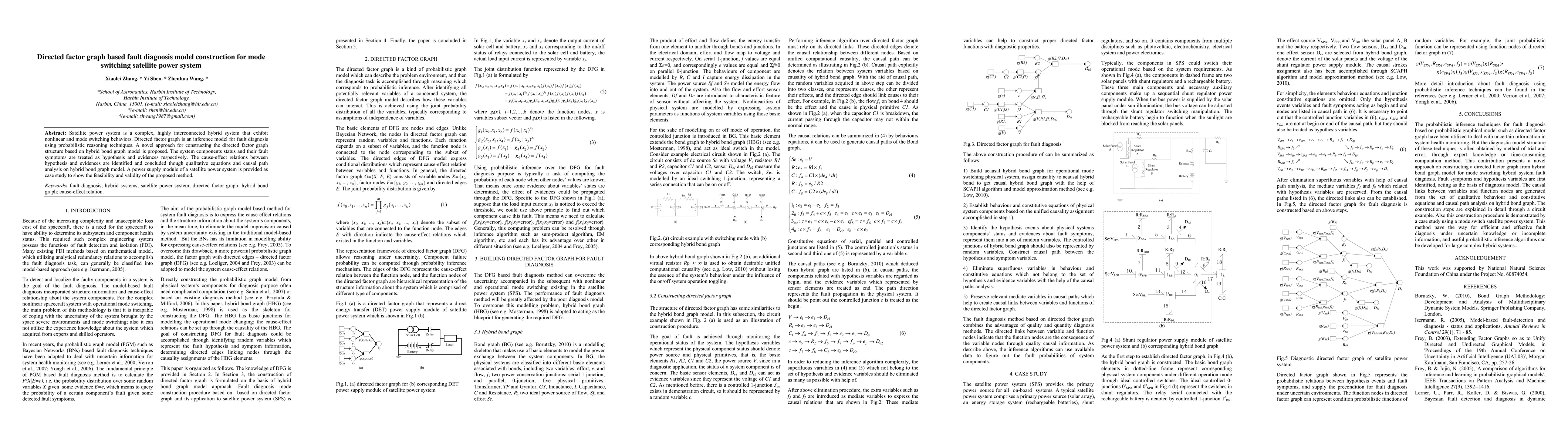 This paper proposes a directed factor graph model for fault diagnosis in satellite power systems using hybrid bond graph modeling. The method identifies cause-effect relationships between system components and fault symptoms, demonstrating its feasibility through a case study on a power supply module.