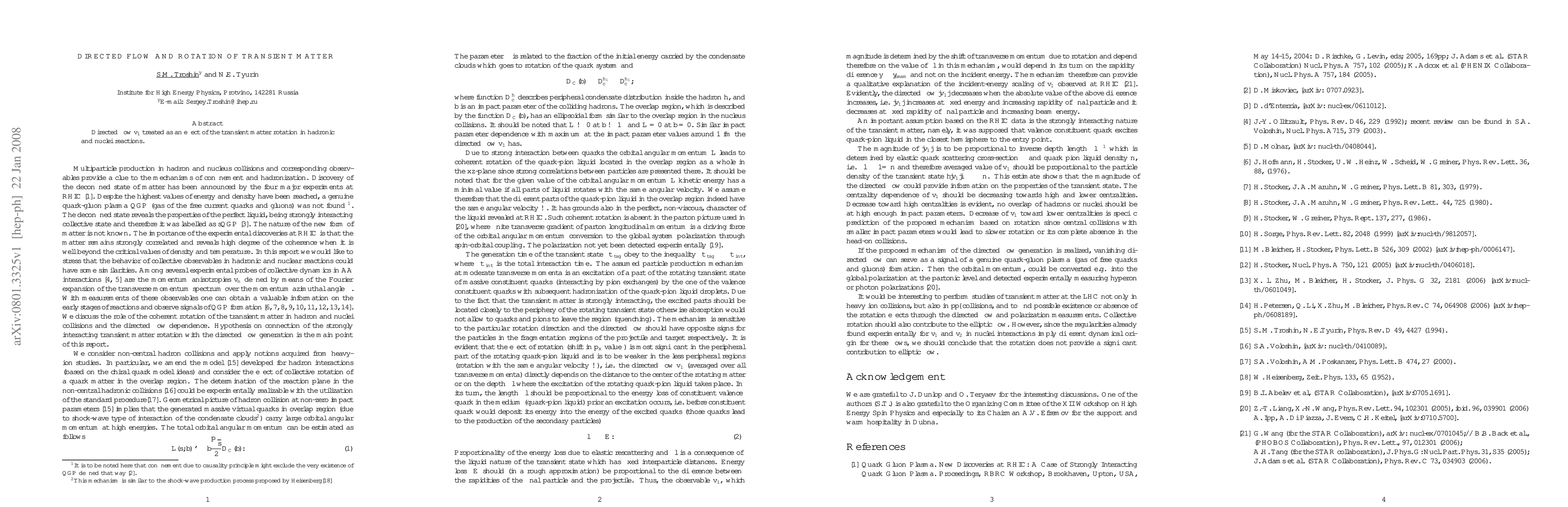 Directed flow $v_1$ treated as an effect of the transient matter rotation in hadronic and nuclei reactions.