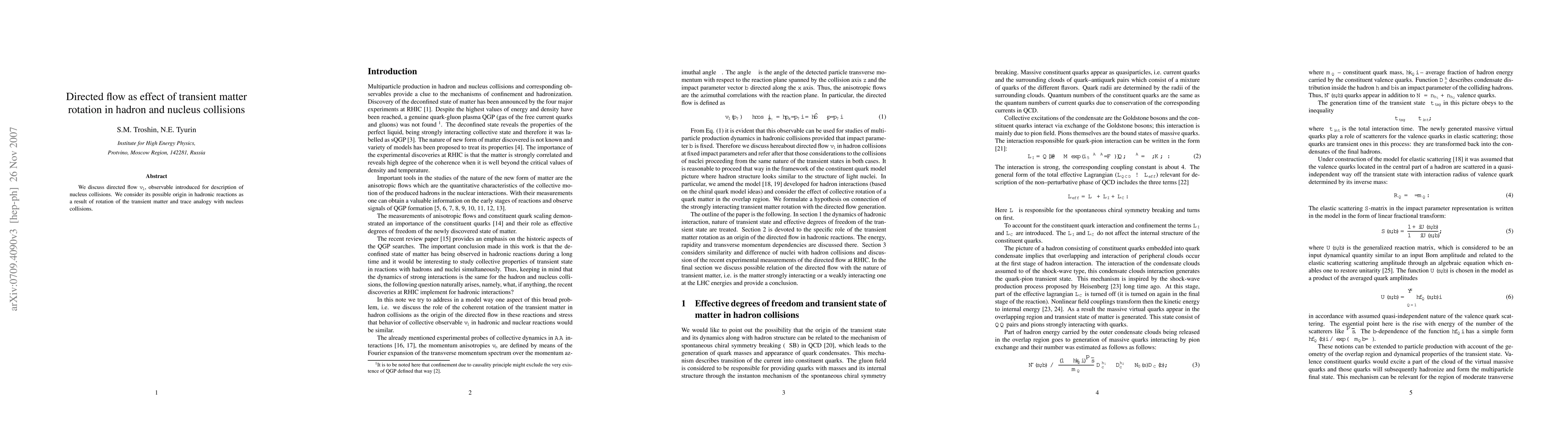 We discuss directed flow introduced for description of nucleus collisions and consider its possible behavior in hadronic and nuclei reactions due to rotation of the transient matter.