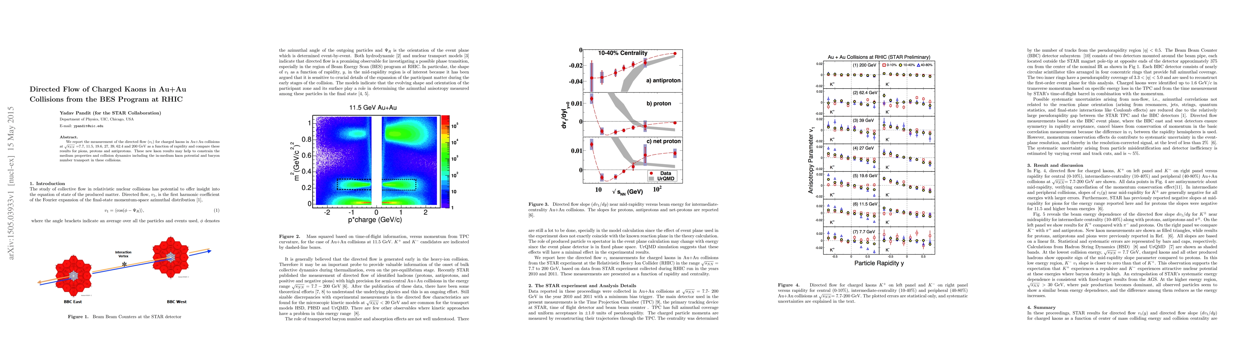 This paper measures the directed flow ($v_{1}$) of charged kaons in Au+Au collisions at various energies, comparing results with pions, protons, and antiprotons. The findings aim to refine understanding of medium properties and collision dynamics, including the in-medium kaon potential and baryon number transport.