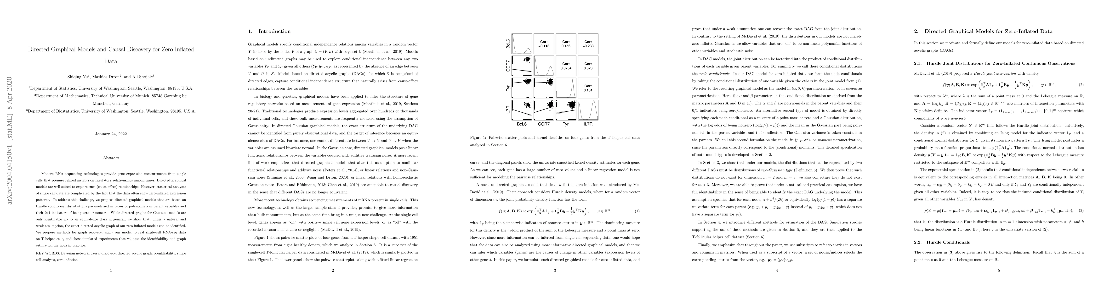 This paper proposes directed graphical models for analyzing zero-inflated single-cell RNA-seq data, leveraging Hurdle conditional distributions. It demonstrates the identifiability of the exact directed acyclic graph under a weak assumption and validates the model through real data application and simulated experiments.