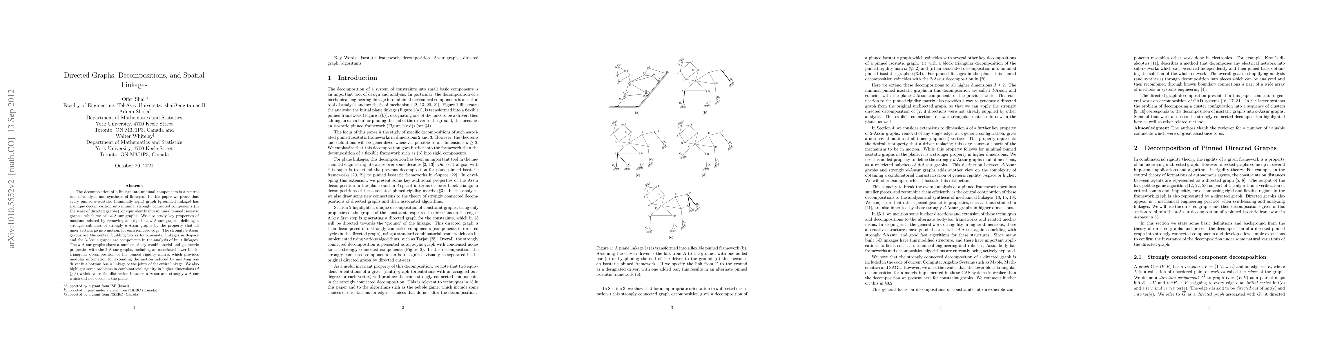 This paper proves the unique decomposition of pinned d-isostatic graphs into minimal strongly connected components called d-Assur graphs, and explores the properties of motions induced by edge removal, defining a subclass of strongly d-Assur graphs. It highlights the importance of strongly 3-Assur graphs in 3-dimensional kinematic linkages and discusses combinatorial rigidity issues in higher dimensions.