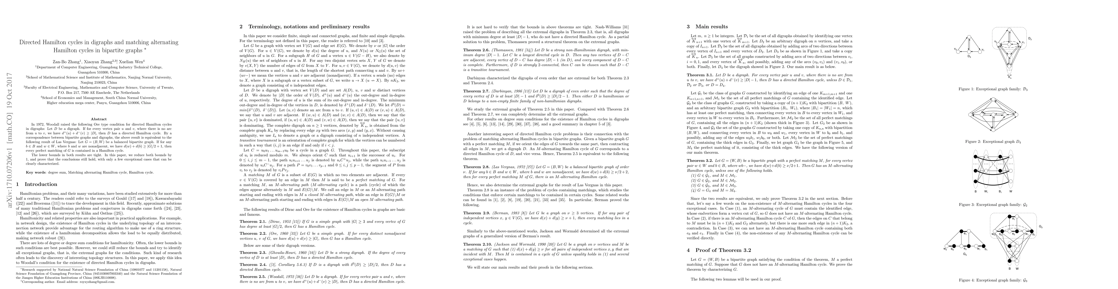 In 1972, Woodall raised the following Ore type condition for directed Hamilton cycles in digraphs: Let $D$ be a digraph. If for every vertex pair $u$ and $v$, where there is no arc from $u$ to $v$, we have $d^+u)+d^-(v)\geq |D|$, then $D$ has a directed Hamilton cycle. By a correspondence between bipartite graphs and digraphs, the above result is equivalent to the following result of Las Vergnas: Let $G = (B,W)$ be a balanced bipartite graph. If for any $b \in B$ and $w \in W$, where $b$ and $w$ are nonadjacent, we have $d(w)+d(b) \geq |G|/2 + 1$, then every perfect matching of $G$ is contained in a Hamilton cycle. The lower bounds in both results are tight. In this paper, we reduce both bounds by $1$, and prove that the conclusions still hold, with only a few exceptional cases that can be clearly characterized.
