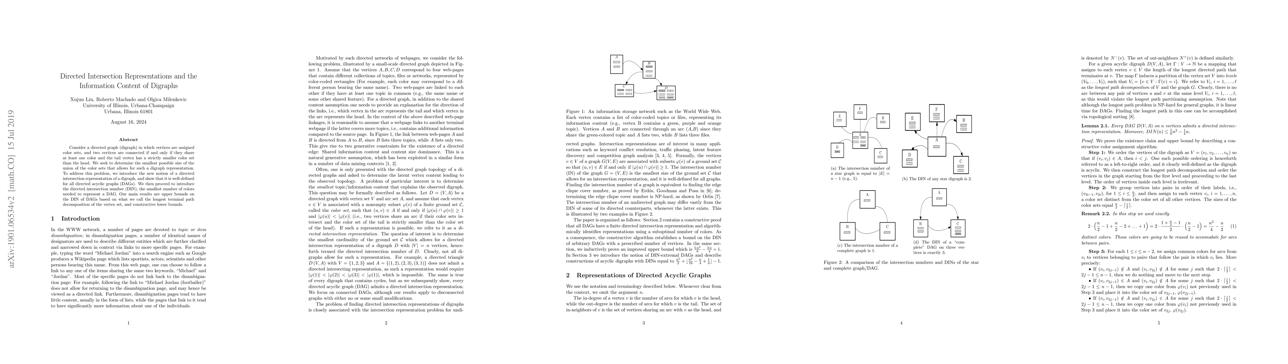 Consider a directed graph (digraph) in which vertices are assigned color sets, and two vertices are connected if and only if they share at least one color and the tail vertex has a strictly smaller color set than the head. We seek to determine the smallest possible size of the union of the color sets that allows for such a digraph representation. To address this problem, we introduce the new notion of a directed intersection representation of a digraph, and show that it is well-defined for all directed acyclic graphs (DAGs). We then proceed to introduce the directed intersection number (DIN), the smallest number of colors needed to represent a DAG. Our main results are upper bounds on the DIN of DAGs based on what we call the longest terminal path decomposition of the vertex set, and constructive lower bounds.
