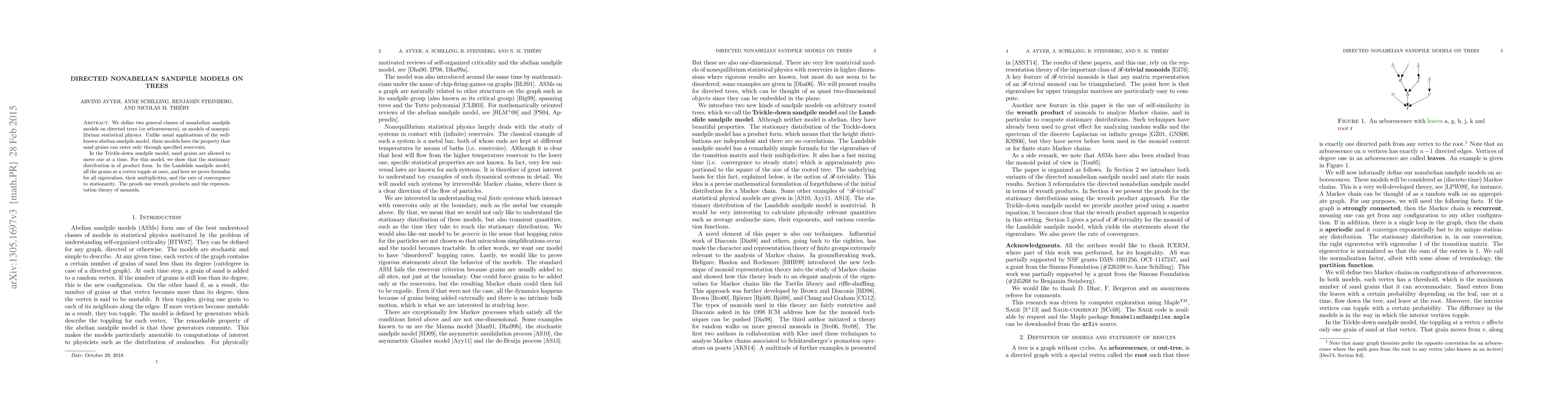 The paper defines and analyzes two directed nonabelian sandpile models on trees using wreath products and representation theory of monoids.