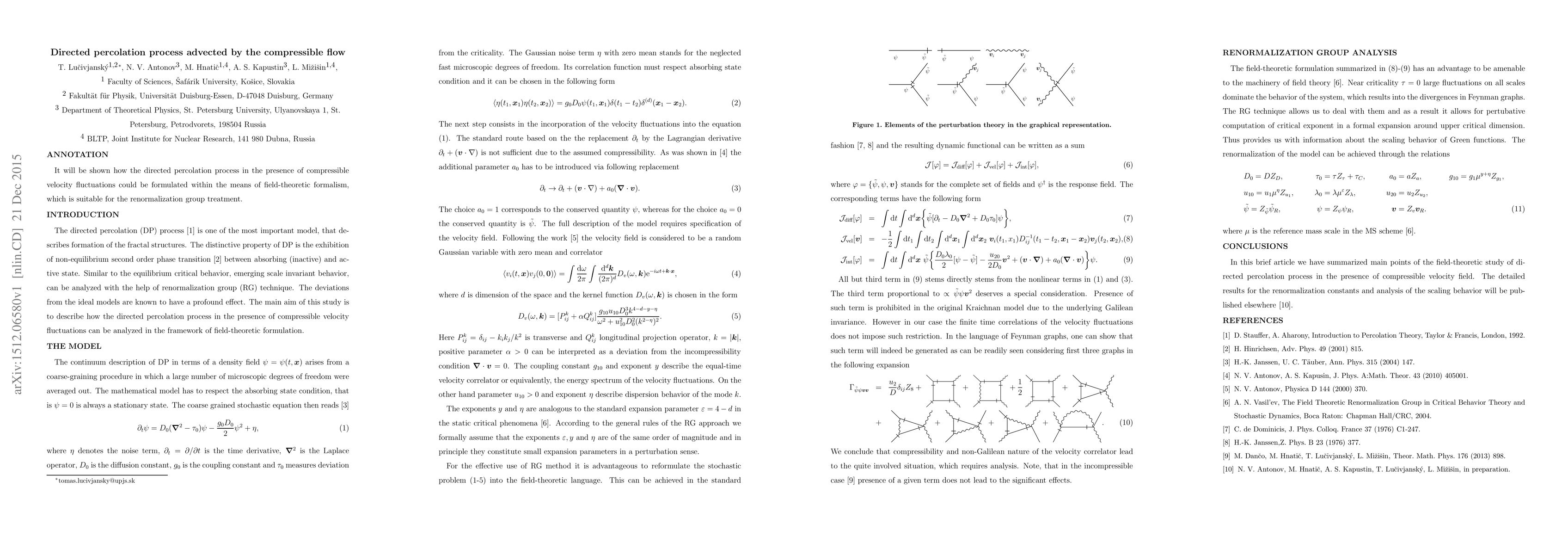 The field-theoretic formulation provides a new approach to analyzing directed percolation processes with compressible velocity fluctuations.