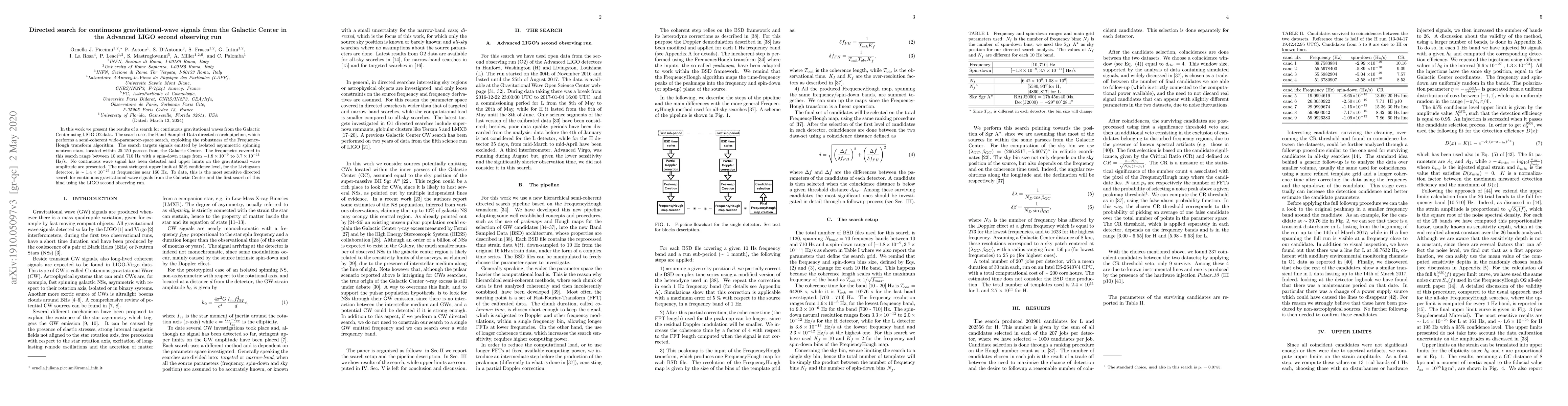 Researchers conducted a search for continuous gravitational waves from the Galactic Center using LIGO O2 data, finding no signals and setting upper limits on gravitational wave amplitude.