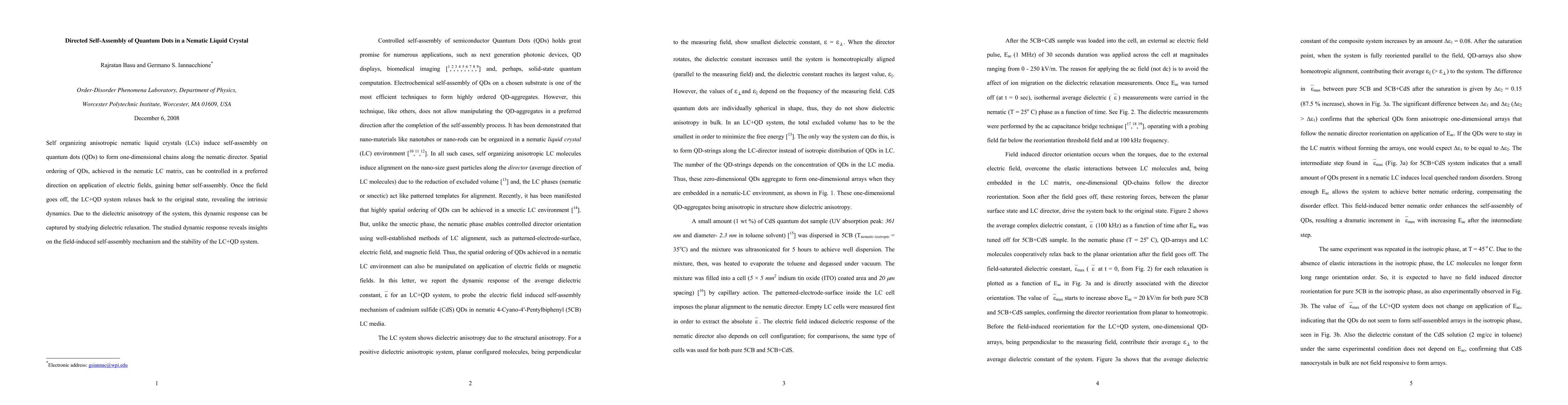 Researchers demonstrate a method to control the self-assembly of quantum dots in nematic liquid crystals using electric fields, revealing insights into the stability and dynamics of the system.