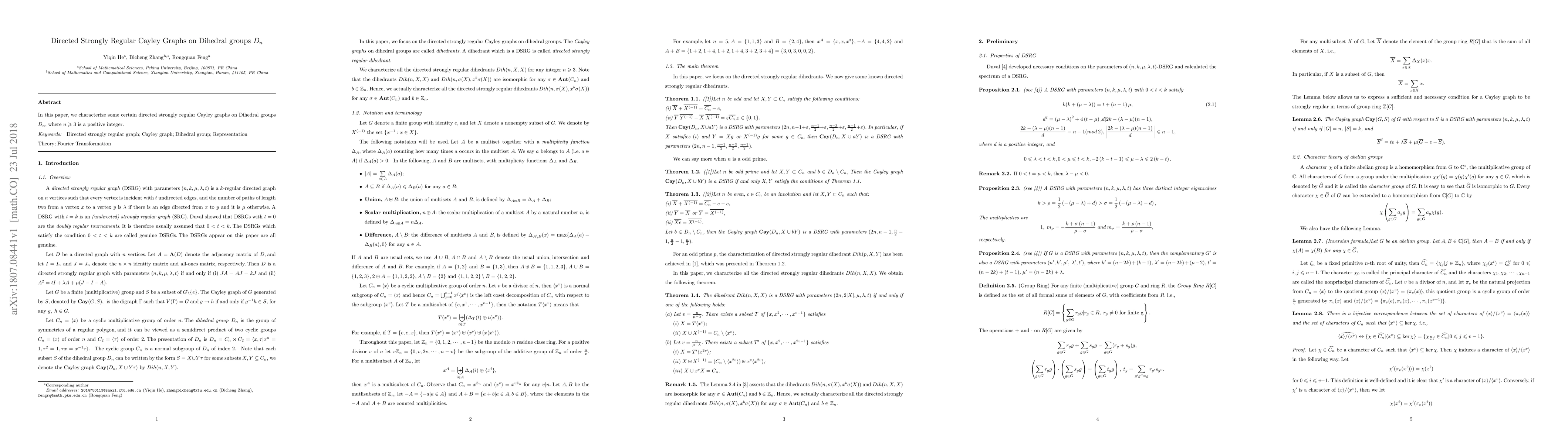 Summary: This paper identifies and characterizes specific directed strongly regular Cayley graphs constructed on Dihedral groups $D_n$ for $n \geq 3$, providing a detailed examination of their structural properties.