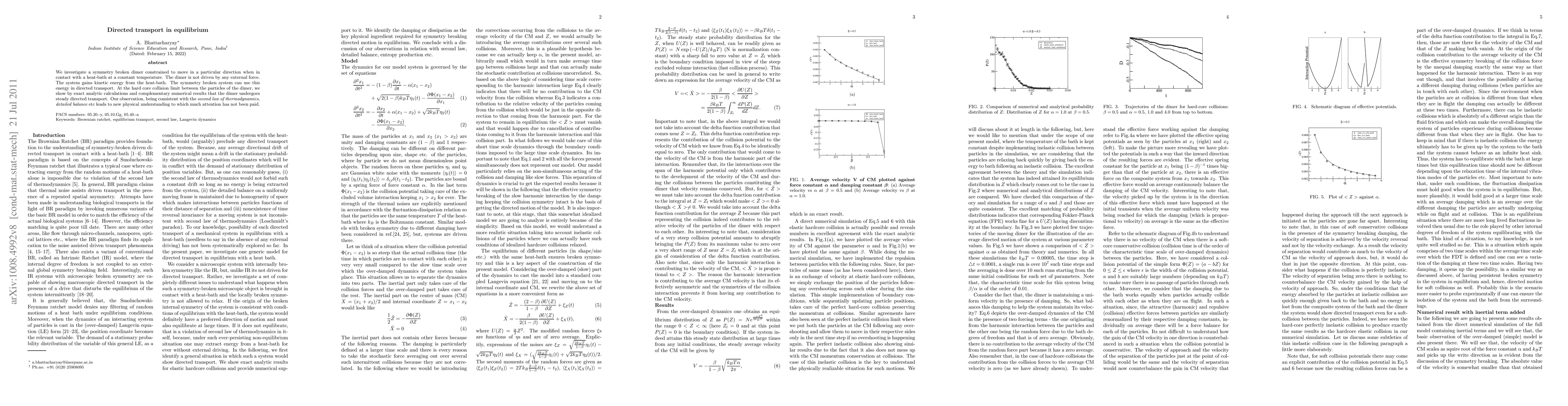 We investigate a symmetry broken dimer constrained to move in a particular direction when in contact with a heat-bath at a constant temperature. The dimer is not driven by any external force. The system gains kinetic energy from the heat-bath. The symmetry broken system can use this energy in directed transport. At the hard core collision limit between the particles of the dimer, we show by exact analytic calculations and complementary numerical results that the dimer undergoes steady directed transport. Our observation, being consistent with the {\it second law of thermodynamics}, {\it detailed balance} etc leads to new physical understanding to which much attention has not been paid.