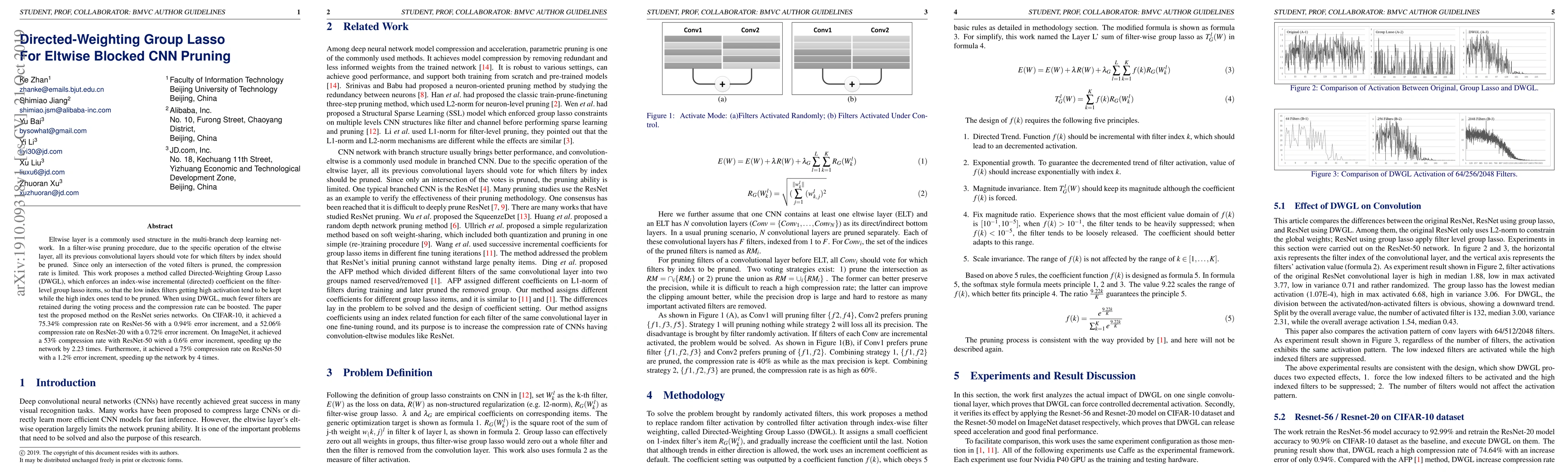 Eltwise layer is a commonly used structure in the multi-branch deep learning network. In a filter-wise pruning procedure, due to the specific operation of the eltwise layer, all its previous convolutional layers should vote for which filters by index should be pruned. Since only an intersection of the voted filters is pruned, the compression rate is limited. This work proposes a method called Directed-Weighting Group Lasso (DWGL), which enforces an index-wise incremental (directed) coefficient on the filterlevel group lasso items, so that the low index filters getting high activation tend to be kept while the high index ones tend to be pruned. When using DWGL, much fewer filters are retained during the voting process and the compression rate can be boosted. The paper test the proposed method on the ResNet series networks. On CIFAR-10, it achieved a 75.34% compression rate on ResNet-56 with a 0.94% error increment, and a 52.06% compression rate on ResNet-20 with a 0.72% error increment. On ImageNet, it achieved a 53% compression rate with ResNet-50 with a 0.6% error increment, speeding up the network by 2.23 times. Furthermore, it achieved a 75% compression rate on ResNet-50 with a 1.2% error increment, speeding up the network by 4 times.