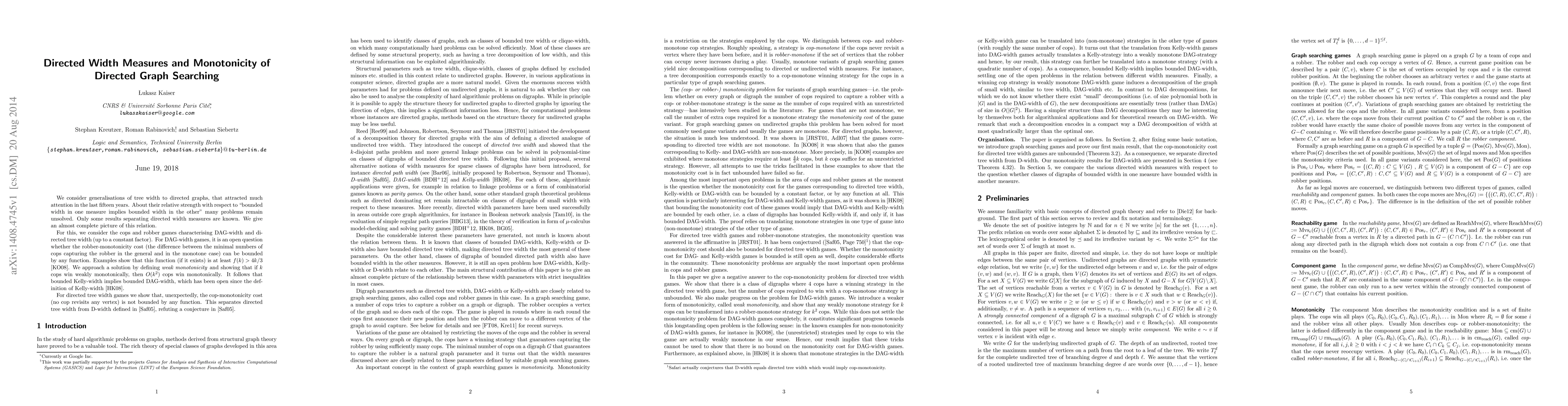 This paper investigates the relationships between different directed width measures for directed graphs, specifically DAG-width and directed tree width. It resolves several open questions by demonstrating that bounded Kelly-width implies bounded DAG-width and refuting a conjecture regarding the boundedness of cop-monotonicity cost for directed tree width.