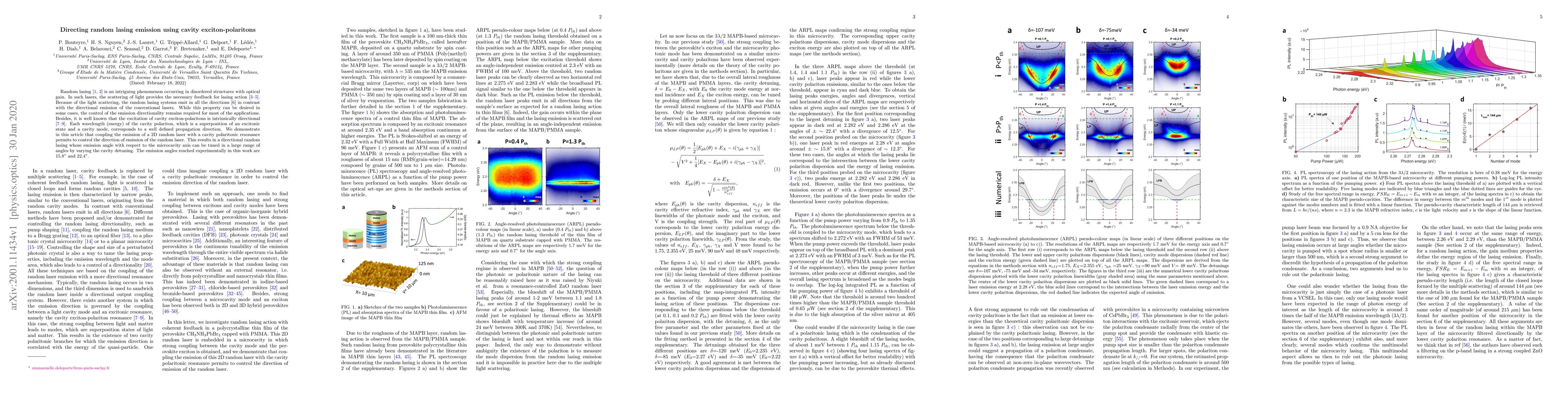 This paper demonstrates the control of random laser emission directionality by coupling it with cavity exciton-polaritons, achieving directional emission angles of 15.8° and 22.4° through tuning cavity detuning. This approach leverages the intrinsic directional properties of cavity polaritons.