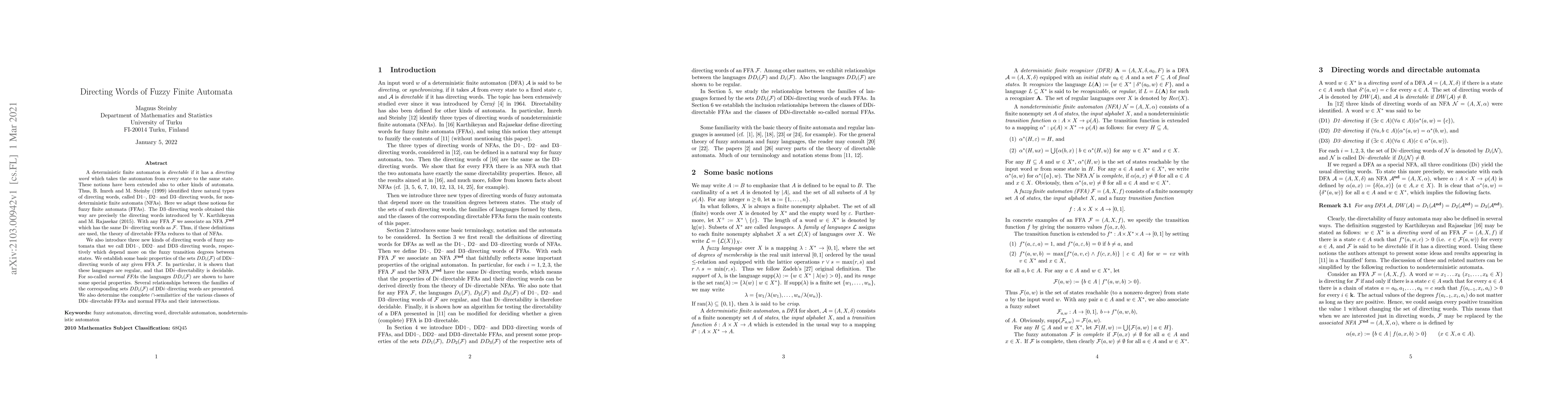 This paper extends the concept of directing words to fuzzy finite automata (FFAs), introducing three new types: DD1-, DD2-, and DD3-directing words. It establishes that these new directing words are regular languages and decidable, and explores their relationships and properties, particularly for normal FFAs.