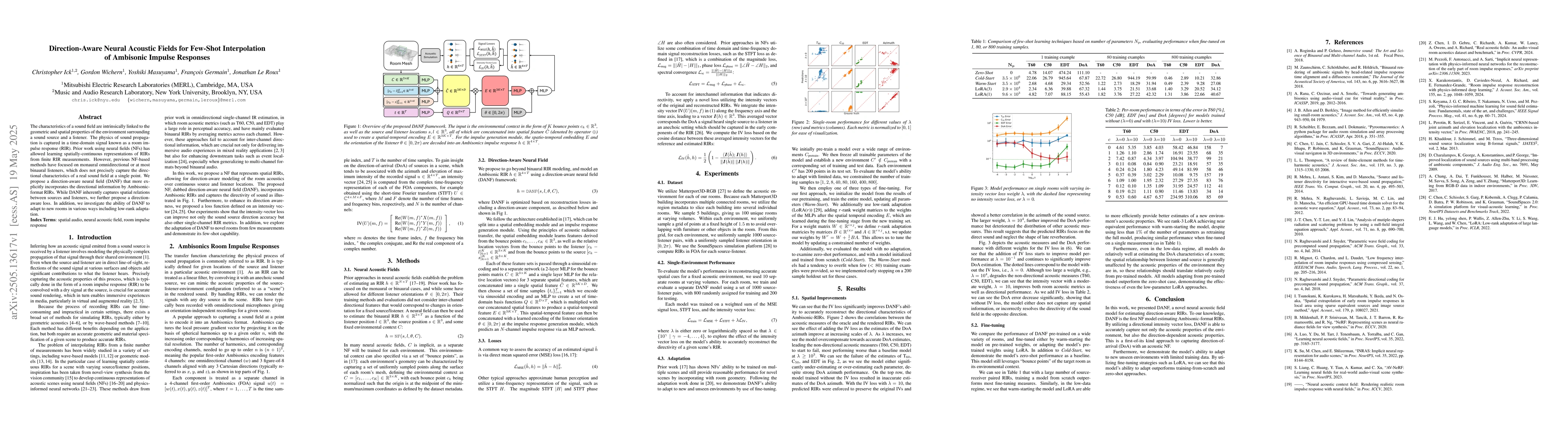 The research proposes a direction-aware neural field (DANF) that incorporates directional information from Ambisonic-format RIRs, capturing spatial relations between sources and listeners. It also introduces a direction-aware loss and investigates adaptation methods for new rooms, including low-rank adaptation.