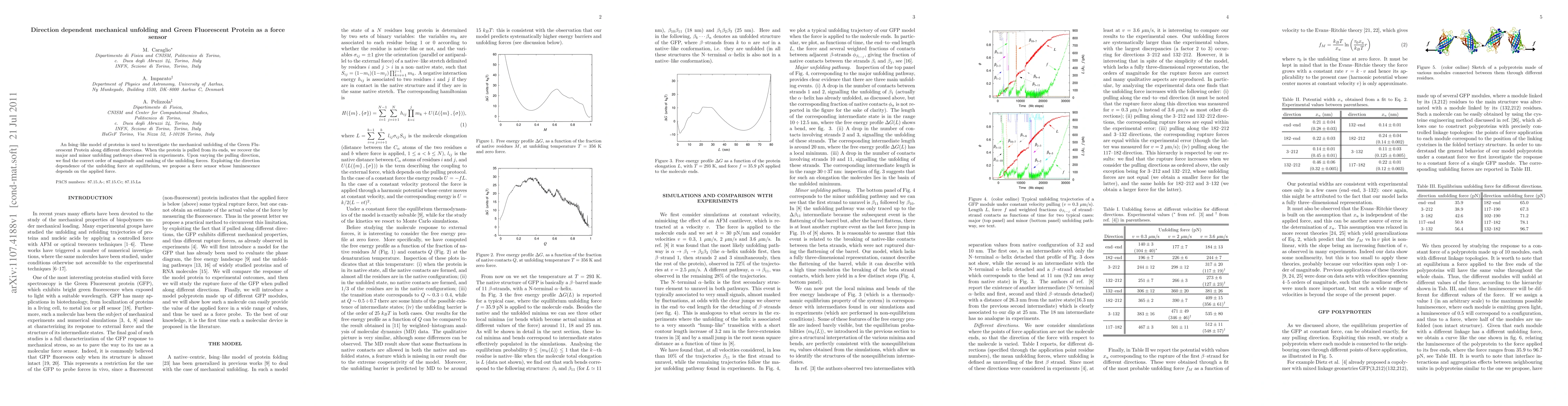 An Ising--like model of proteins is used to investigate the mechanical unfolding of the Green Fluorescent Protein along different directions. When the protein is pulled from its ends, we recover the major and minor unfolding pathways observed in experiments. Upon varying the pulling direction, we find the correct order of magnitude and ranking of the unfolding forces. Exploiting the direction dependence of the unfolding force at equilibrium, we propose a force sensor whose luminescence depends on the applied force.