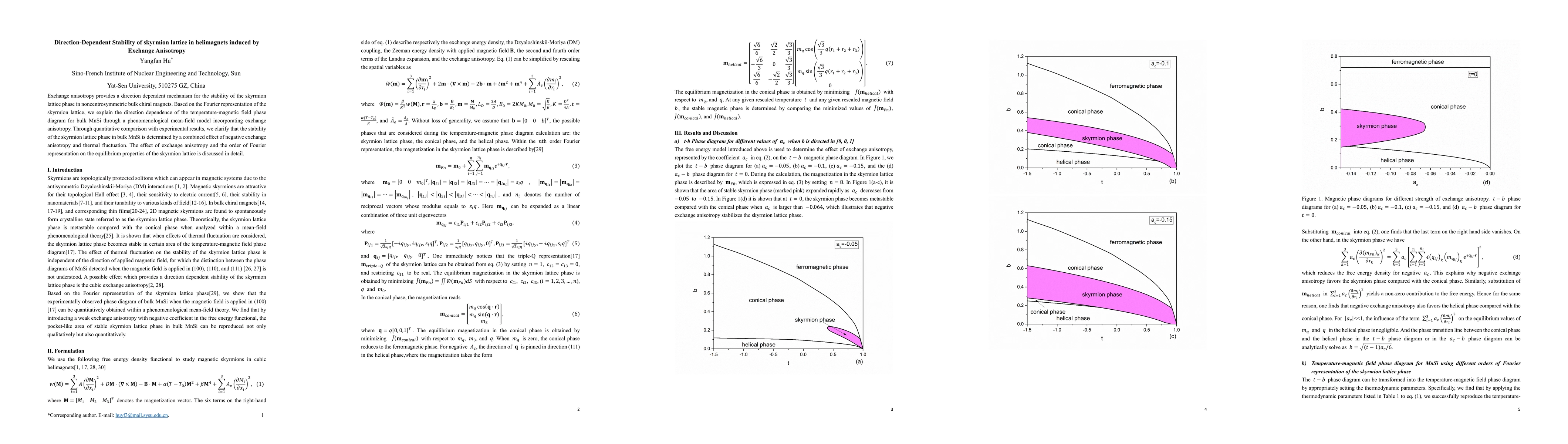 This paper investigates how exchange anisotropy influences the stability of skyrmion lattice phases in helimagnets, particularly in bulk MnSi. The authors use a phenomenological mean-field model to explain the direction-dependent temperature-magnetic field phase diagram, concluding that the stability is a result of negative exchange anisotropy and thermal fluctuations.