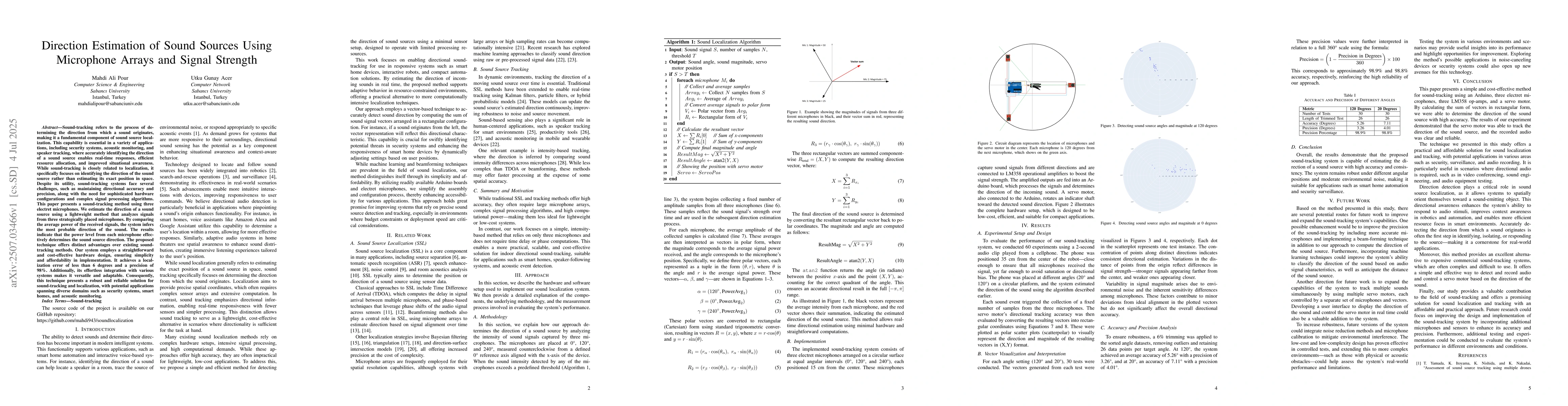 Sound-tracking refers to the process of determining the direction from which a sound originates, making it a fundamental component of sound source localization. This capability is essential in a variety of applications, including security systems, acoustic monitoring, and speaker tracking, where accurately identifying the direction of a sound source enables real-time responses, efficient resource allocation, and improved situational awareness. While sound-tracking is closely related to localization, it specifically focuses on identifying the direction of the sound source rather than estimating its exact position in space. Despite its utility, sound-tracking systems face several challenges, such as maintaining directional accuracy and precision, along with the need for sophisticated hardware configurations and complex signal processing algorithms. This paper presents a sound-tracking method using three electret microphones. We estimate the direction of a sound source using a lightweight method that analyzes signals from three strategically placed microphones. By comparing the average power of the received signals, the system infers the most probable direction of the sound. The results indicate that the power level from each microphone effectively determines the sound source direction. Our system employs a straightforward and cost-effective hardware design, ensuring simplicity and affordability in implementation. It achieves a localization error of less than 6 degrees and a precision of 98%. Additionally, its effortless integration with various systems makes it versatile and adaptable. Consequently, this technique presents a robust and reliable solution for sound-tracking and localization, with potential applications spanning diverse domains such as security systems, smart homes, and acoustic monitoring.