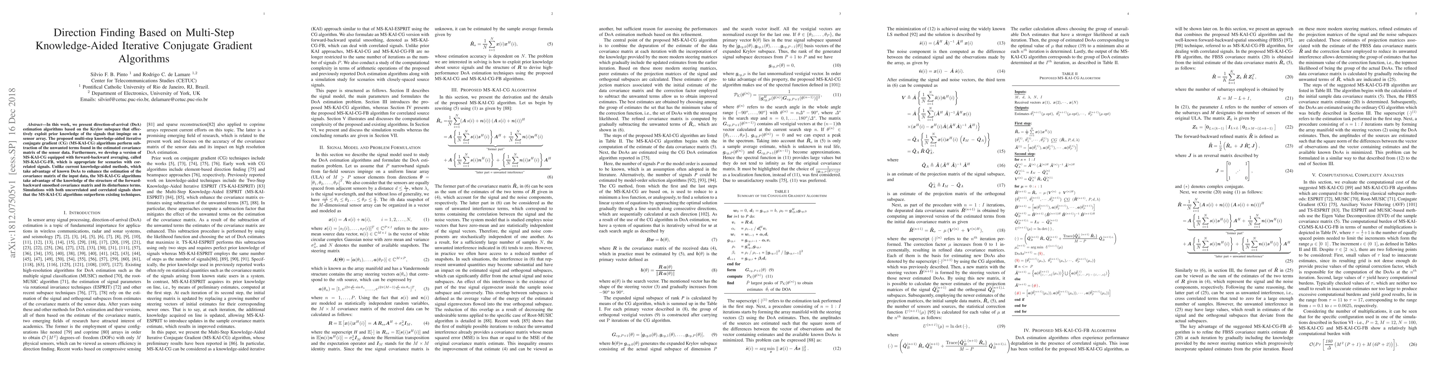 This paper proposes multi-step knowledge-aided iterative conjugate gradient (MS-KAI-CG) algorithms for direction-of-arrival (DoA) estimation using the Krylov subspace, which leverage prior signal knowledge. The MS-KAI-CG-FB variant, with forward-backward averaging, is shown to outperform existing methods in simulations with both uncorrelated and correlated signals.