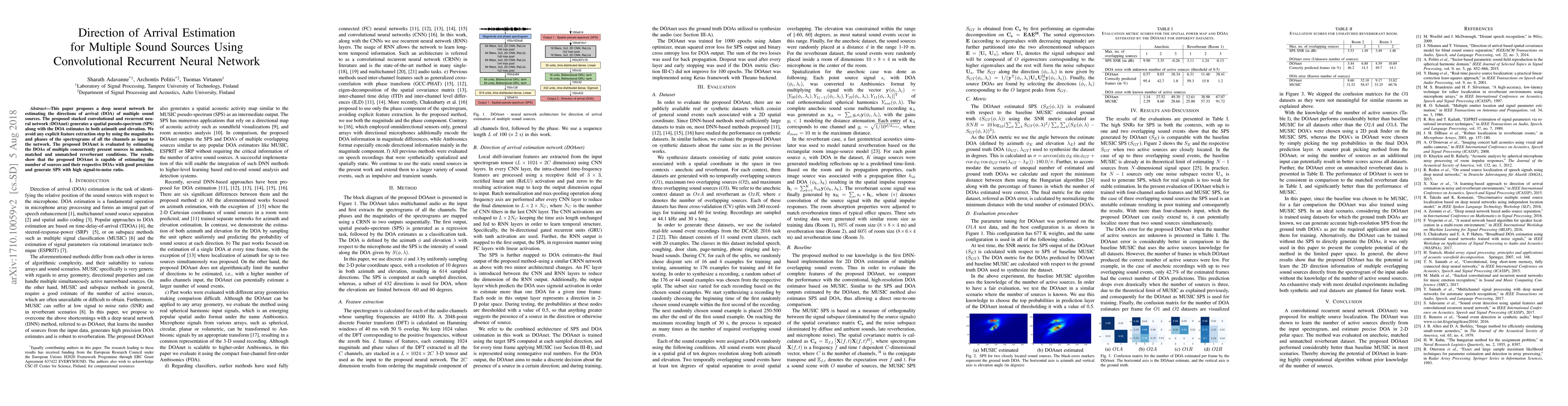 This paper introduces a convolutional recurrent neural network (DOAnet) for estimating the directions of arrival (DOA) of multiple sound sources, achieving precise DOA estimates without explicit feature extraction. The network's performance is validated under various conditions, demonstrating its capability to accurately estimate the number and DOAs of concurrent sources.
