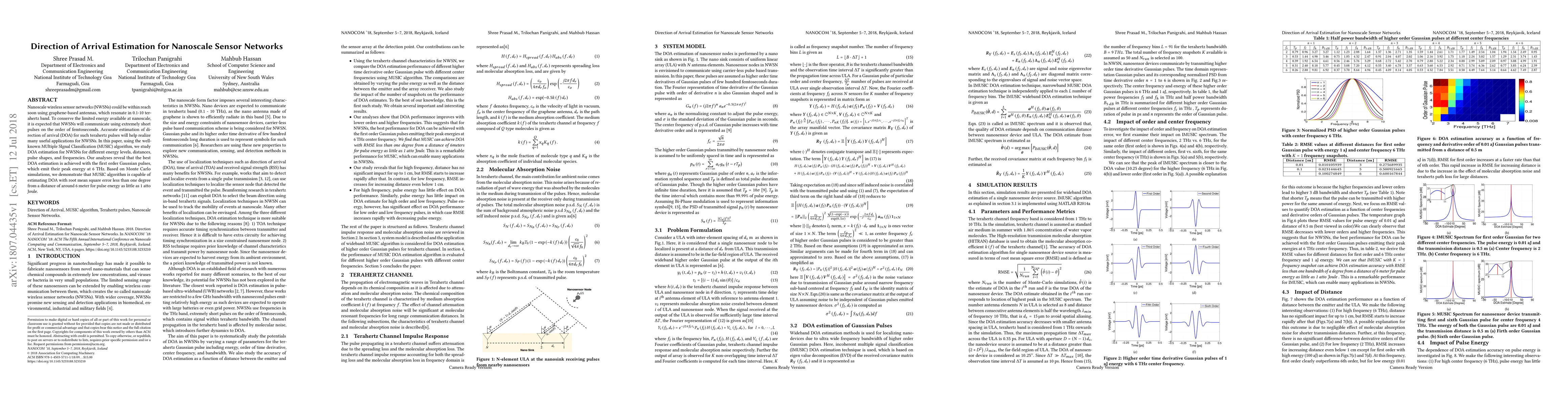 Researchers develop a method to estimate direction of arrival for nanoscale sensor networks using the MUSIC algorithm, achieving accurate results even with extremely short pulses.