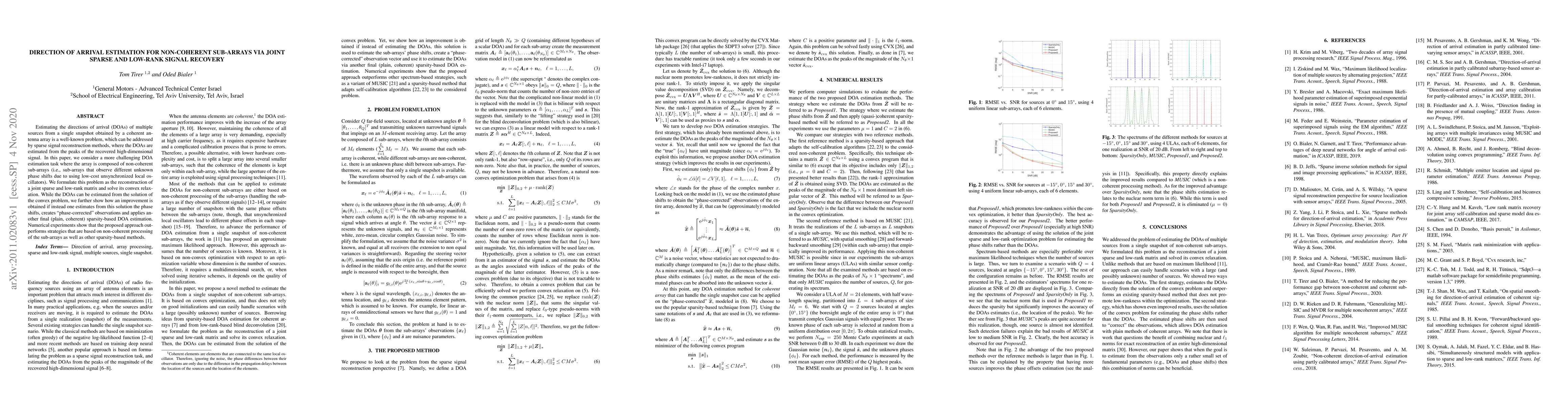 This paper proposes a method for estimating directions of arrival (DOAs) from non-coherent sub-arrays using joint sparse and low-rank signal recovery. It outperforms traditional non-coherent and sparsity-based methods by first estimating phase shifts and then applying a final coherent sparsity-based DOA estimation.