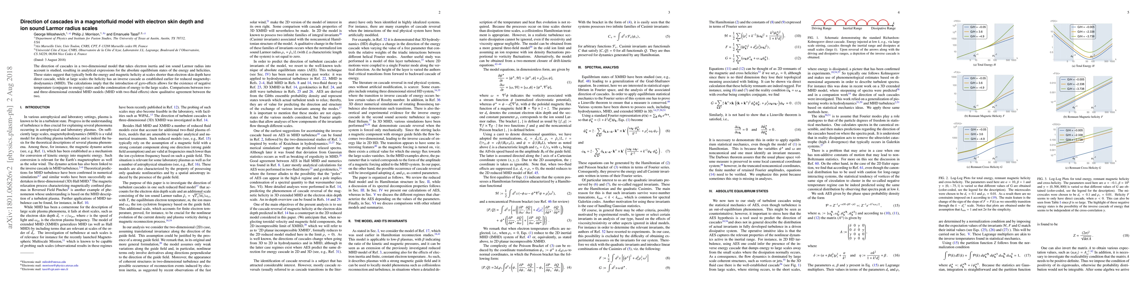 Researchers studied direction of cascades in a magnetofluid model with electron skin depth, finding that energy and magnetic helicity have opposite cascade directions at different scales.