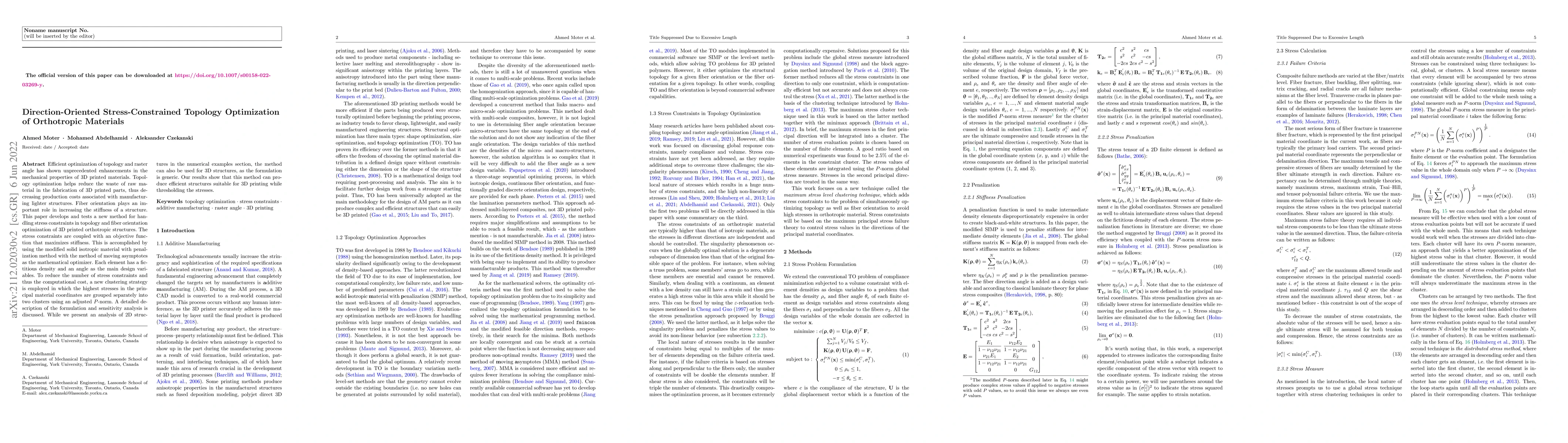 A new method for optimizing the topology and fiber orientation of 3D printed materials to maximize stiffness while minimizing stress, using a novel clustering strategy and mathematical optimizer.