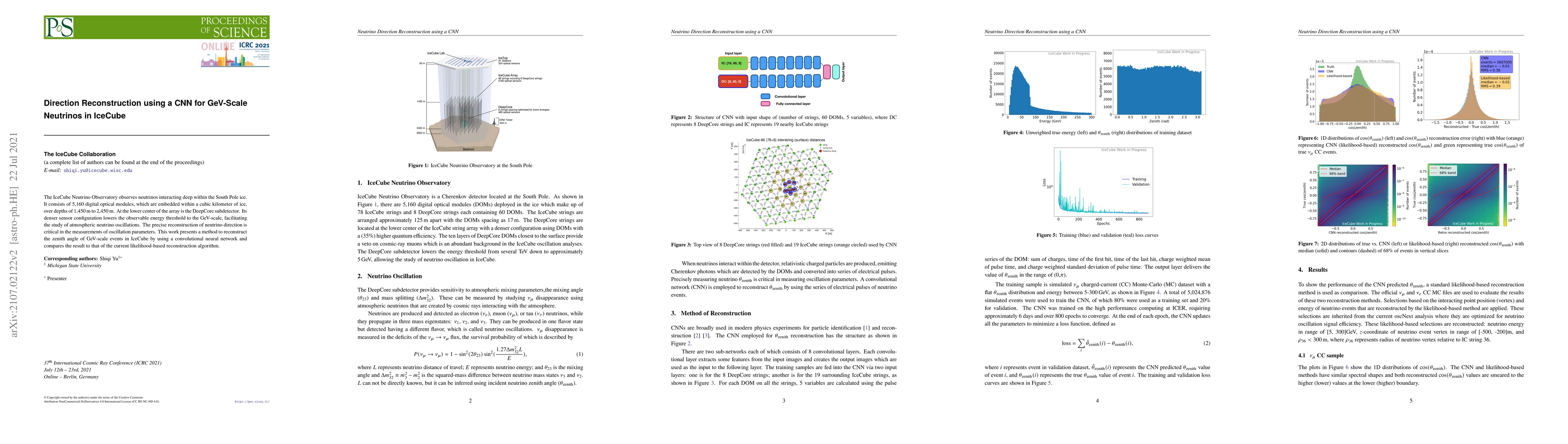 The IceCube Neutrino Observatory observes neutrinos interacting deep within the South Pole ice. It consists of 5,160 digital optical modules embedded within a cubic kilometer of ice, over depths of 1,450 m to 2,450 m. At the lower center of the array is the DeepCore subdetector. Its denser sensor configuration lowers the observable energy threshold to the GeV-scale, facilitating the study of atmospheric neutrino oscillations. The precise reconstruction of neutrino direction is critical in the measurements of oscillation parameters. This work presents a method to reconstruct the zenith angle of GeV-scale events in IceCube by using a convolutional neural network and compares the result to that of the current likelihood-based reconstruction algorithm.
