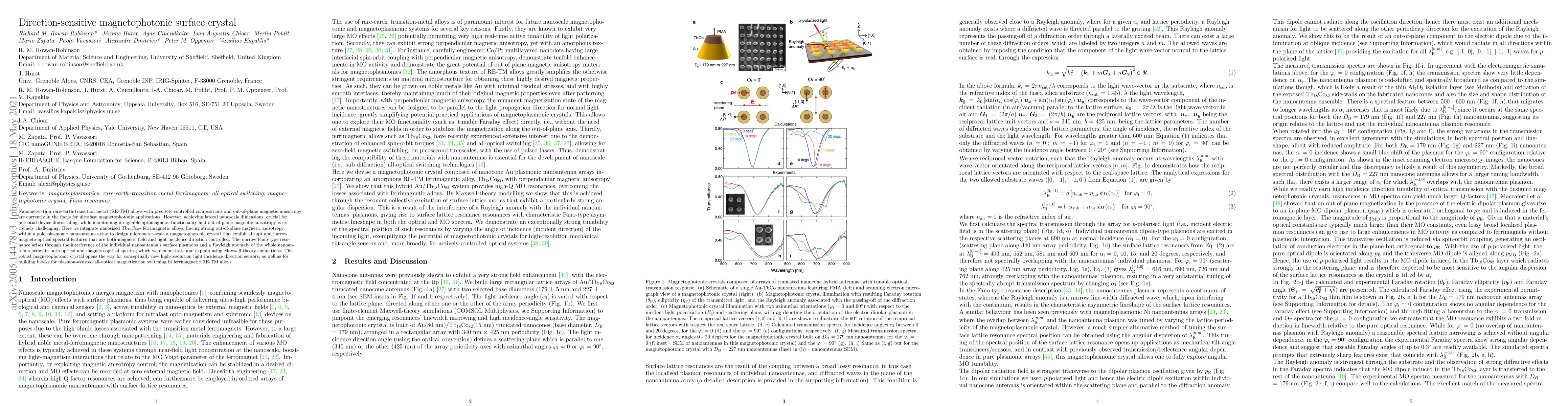 The research presents a novel magnetophotonic crystal made by integrating Tb18Co82 alloy nanostructures into a gold plasmonic nanoantenna array. This design maintains out-of-plane magnetic anisotropy and enables precise control of light incidence direction and magnetic field, resulting in narrow and abrupt magneto-optical spectral features. The findings suggest potential applications in high-resolution light detection and all-optical magnetization switching in ferrimagnetic RE-TM alloys.