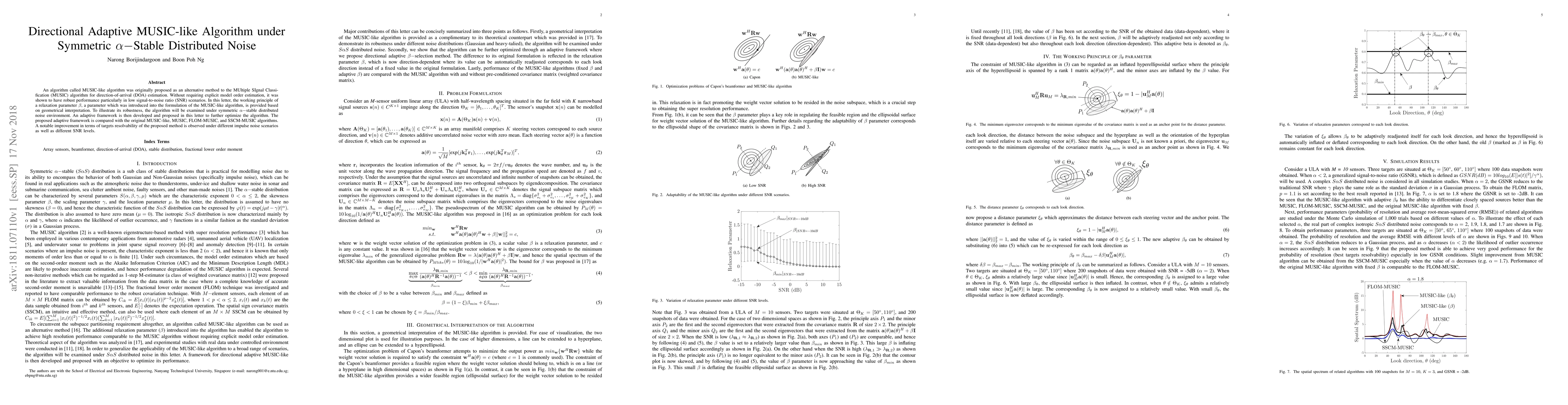 An algorithm called MUSIC-like algorithm was originally proposed as an alternative method to the MUltiple SIgnal Classification (MUSIC) algorithm for direction-of-arrival (DOA) estimation. Without requiring explicit model order estimation, it was shown to have robust performance particularly in low signal-to-noise ratio (SNR) scenarios. In this letter, the working principle of a relaxation parameter {\beta}, a parameter which was introduced into the formulation of the MUSIC-like algorithm, is provided based on geometrical interpretation. To illustrate its robustness, the algorithm will be examined under symmetric {\alpha}-stable distributed noise environment. An adaptive framework is then developed and proposed in this letter to further optimize the algorithm. The proposed adaptive framework is compared with the original MUSIC-like, MUSIC, FLOM-MUSIC, and SSCM-MUSIC algorithms. A notable improvement in terms of targets resolvability of the proposed method is observed under different impulse noise scenarios as well as different SNR levels.