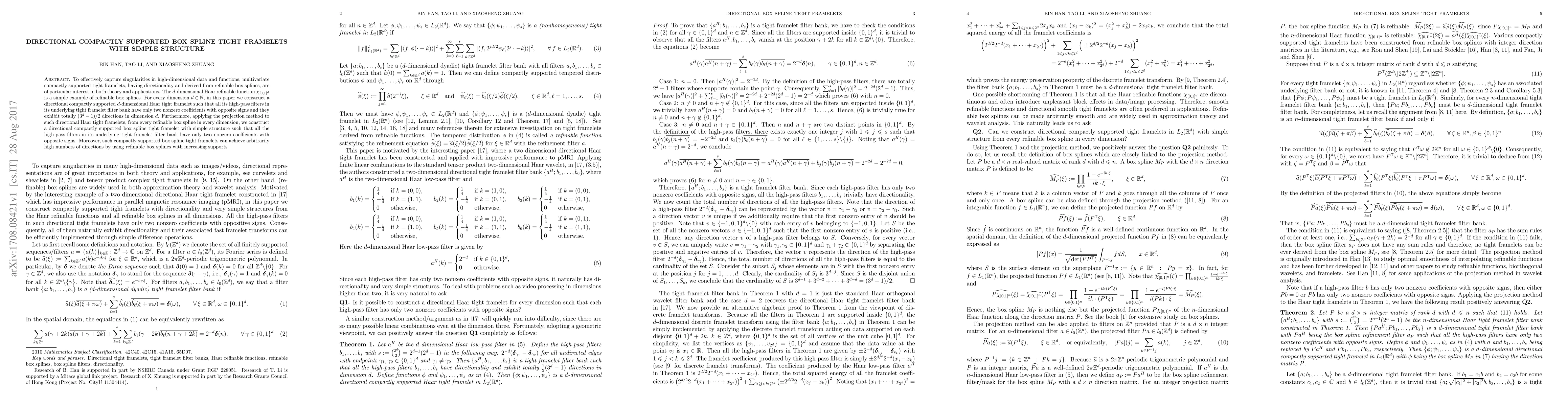 This paper constructs directional compactly supported box spline tight framelets derived from refinable box splines, featuring high-pass filters with only two nonzero coefficients. These framelets achieve up to $(3^d-1)/2$ directions in dimension $d$ and can handle high-dimensional data singularities effectively.