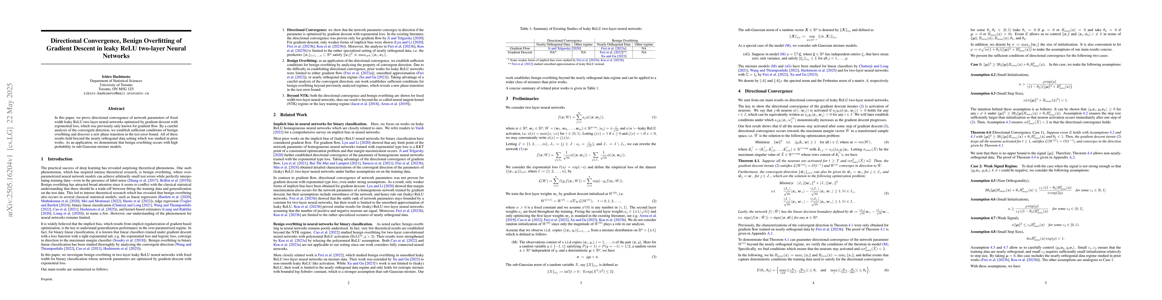 The paper presents a rigorous proof of directional convergence for gradient descent in leaky ReLU two-layer networks and identifies new conditions for benign overfitting.