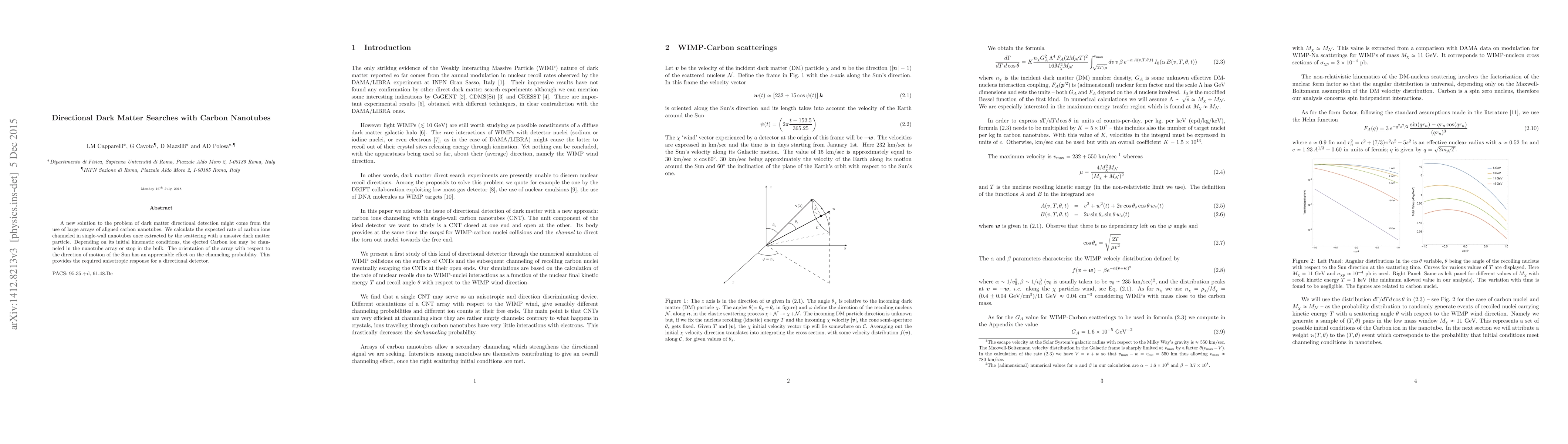 This research proposes using aligned carbon nanotube arrays for detecting dark matter, calculating ion channeling rates post dark matter scattering. The array's orientation relative to the Sun's motion influences channeling probability, offering an anisotropic response for directional detection.