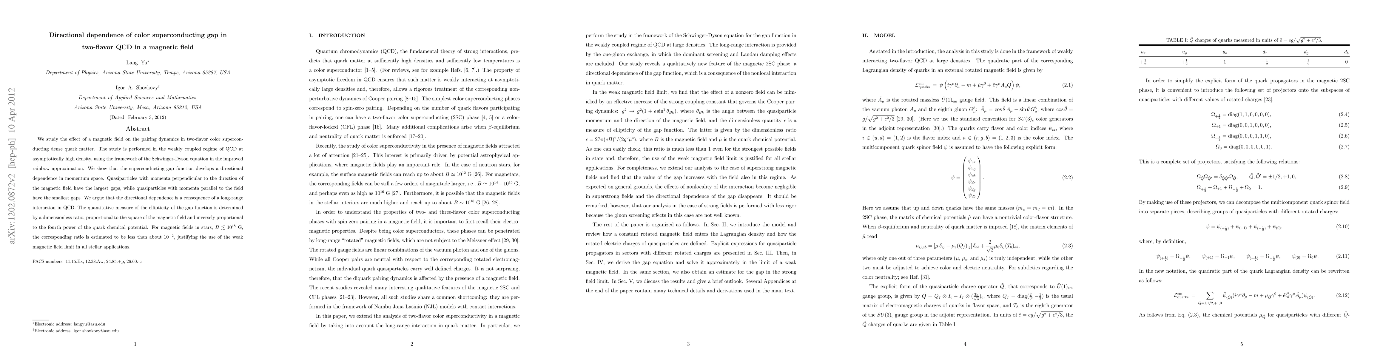 We study the effect of a magnetic field on the pairing dynamics in two-flavor color superconducting dense quark matter. The study is performed in the weakly coupled regime of QCD at asymptotically high density, using the framework of the Schwinger-Dyson equation in the improved rainbow approximation. We show that the superconducting gap function develops a directional dependence in momentum space. Quasiparticles with momenta perpendicular to the direction of the magnetic field have the largest gaps, while quasiparticles with momenta parallel to the field have the smallest gaps. We argue that the directional dependence is a consequence of a long-range interaction in QCD. The quantitative measure of the ellipticity of the gap function is determined by a dimensionless ratio, proportional to the square of the magnetic field and inversely proportional to the fourth power of the quark chemical potential. For magnetic fields in stars, $B\lesssim 10^{18} G$, the corresponding ratio is estimated to be less than about $10^{-2}$, justifying the use of the weak magnetic field limit in all stellar applications.