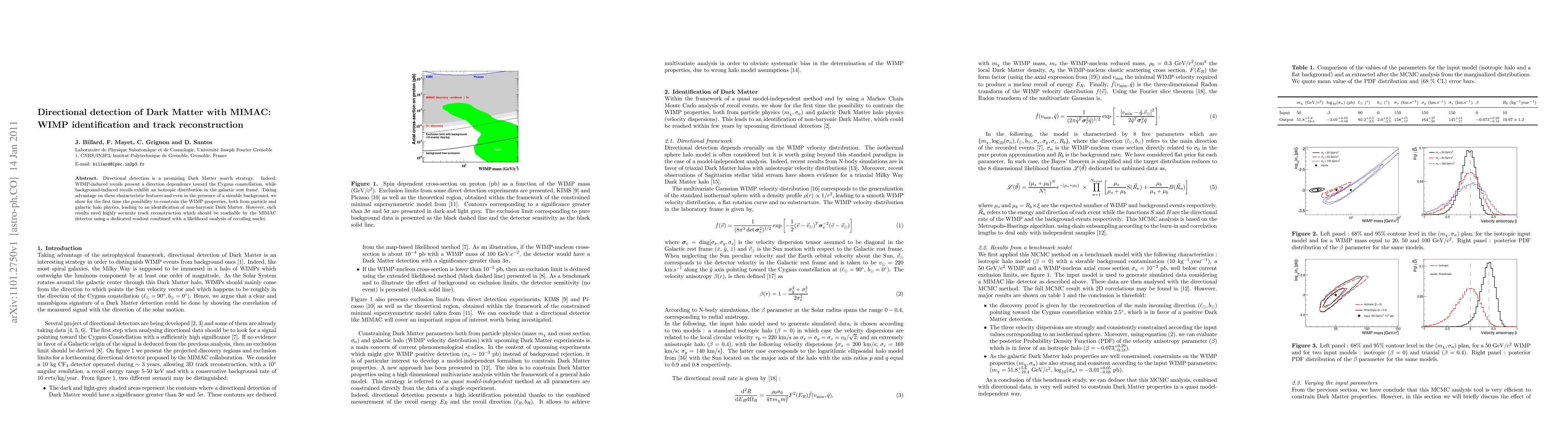 This paper explores the directional detection of Dark Matter using the MIMAC detector, demonstrating the potential for WIMP identification through directional dependence of WIMP-induced recoils. The study shows how accurate track reconstruction and a likelihood analysis can distinguish WIMP signals from background noise, offering insights into non-baryonic Dark Matter properties.