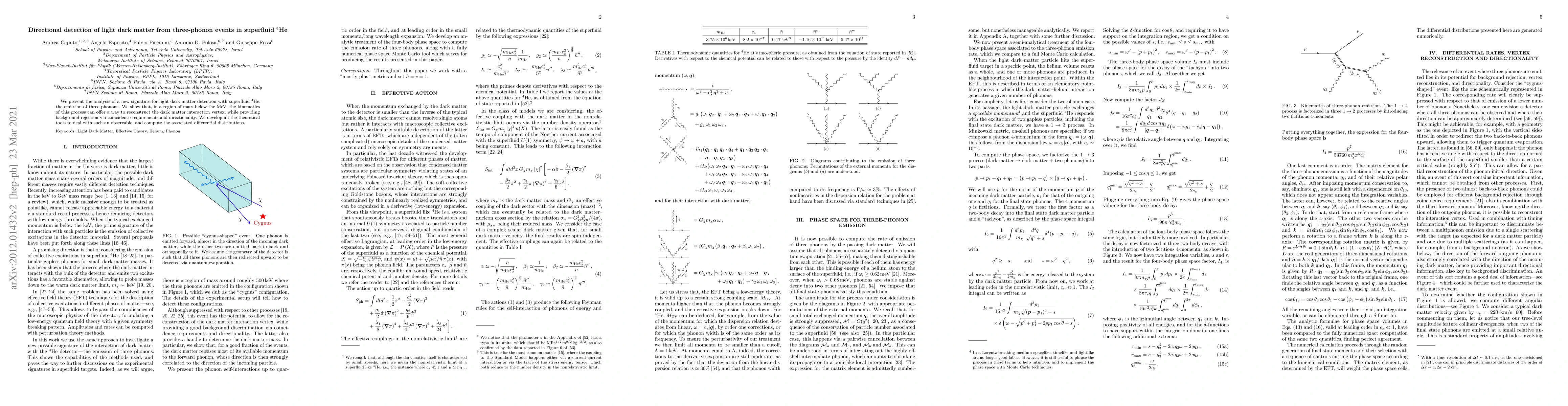 Researchers analyze three-phonon events in superfluid $^4$He to detect light dark matter, proposing a new signature that can reconstruct the dark matter interaction vertex with background rejection via directionality and coincidence requirements.