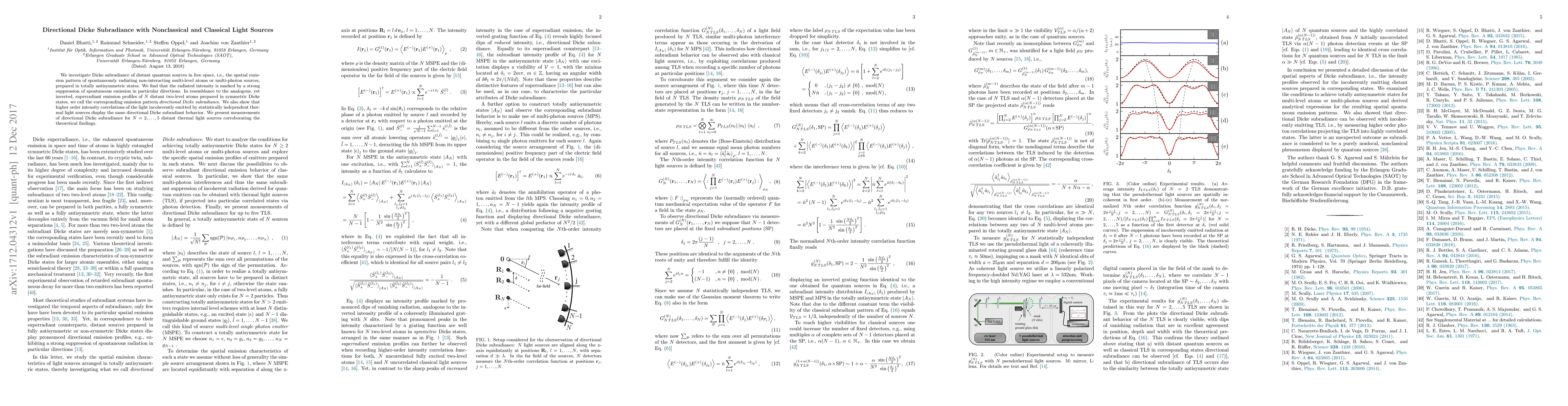 We investigate Dicke subradiance of distant quantum sources in free space, i.e., the spatial emission pattern of spontaneously radiating non-interacting multi-level atoms or multi-photon sources, prepared in totally antisymmetric states. We find that the radiated intensity is marked by a strong suppression of spontaneous emission in particular directions. In resemblance to the analogous, yet inverted, superradiant emission profiles of $N$ distant two-level atoms prepared in symmetric Dicke states, we call the corresponding emission pattern $\textit{directional Dicke subradiance}$. We also show that higher order intensity correlations of the light incoherently emitted by statistically independent thermal light sources display the same directional Dicke subradiant behavior. We present measurements of directional Dicke subradiance for $N = 2, \ldots, 5$ distant thermal light sources corroborating the theoretical findings.