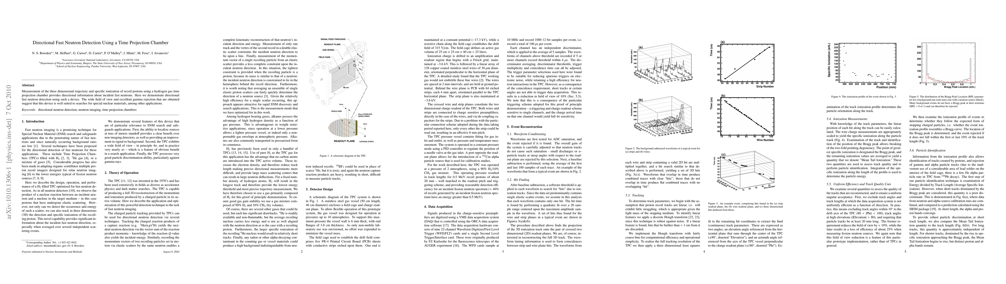 This paper presents a hydrogen gas time projection chamber for detecting fast neutrons by measuring recoil protons' trajectories and ionization, offering directional detection and high gamma rejection, making it effective for identifying special nuclear materials. The device's wide field of view enhances its potential applications in security and material detection.