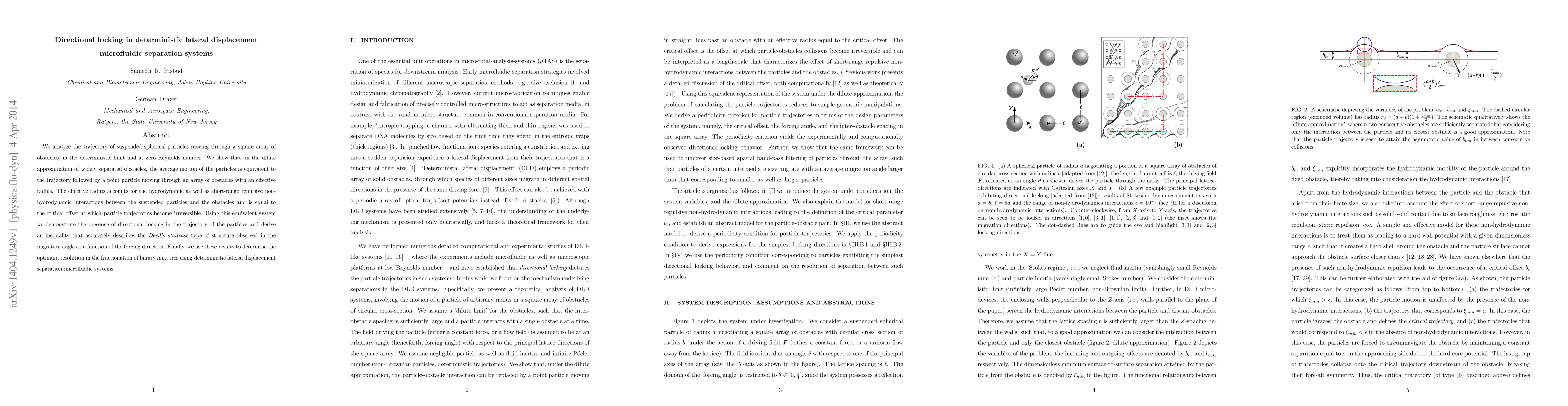 This paper investigates the directional locking phenomenon in deterministic lateral displacement microfluidic systems, demonstrating that particle trajectories can be modeled by an effective radius incorporating hydrodynamic and non-hydrodynamic interactions. It derives an inequality to describe the Devil's staircase structure in migration angles and optimizes the separation resolution for binary mixtures.