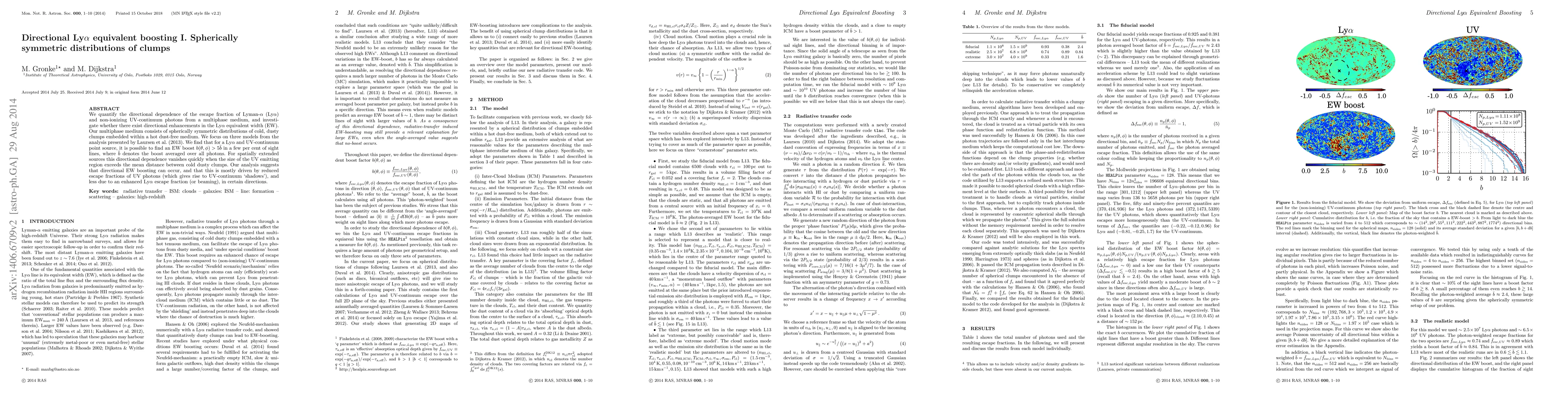 We quantify the directional dependence of the escape fraction of Lyman-$\alpha$ (Ly$\alpha$) and non-ionising UV-continuum photons from a multiphase medium, and investigate whether there exist directional enhancements in the Ly$\alpha$ equivalent width (EW). Our multiphase medium consists of spherically symmetric distributions of cold, dusty clumps embedded within a hot dust-free medium. We focus on three models from the analysis presented by Laursen et al. (2013). We find that for a Ly$\alpha$ and UV-continuum point source, it is possible to find an EW boost $b(\theta,\phi) > 5 \bar{b}$ in a few per cent of sight lines, where $\bar{b}$ denotes the boost averaged over all photons. For spatially extended sources this directional dependence vanishes quickly when the size of the UV emitting region exceeds the mean distance between cold dusty clumps. Our analysis suggests that directional EW boosting can occur, and that this is mostly driven by reduced escape fractions of UV photons (which gives rise to UV-continuum `shadows'), and less due to an enhanced Ly$\alpha$ escape fraction (or beaming), in certain directions.