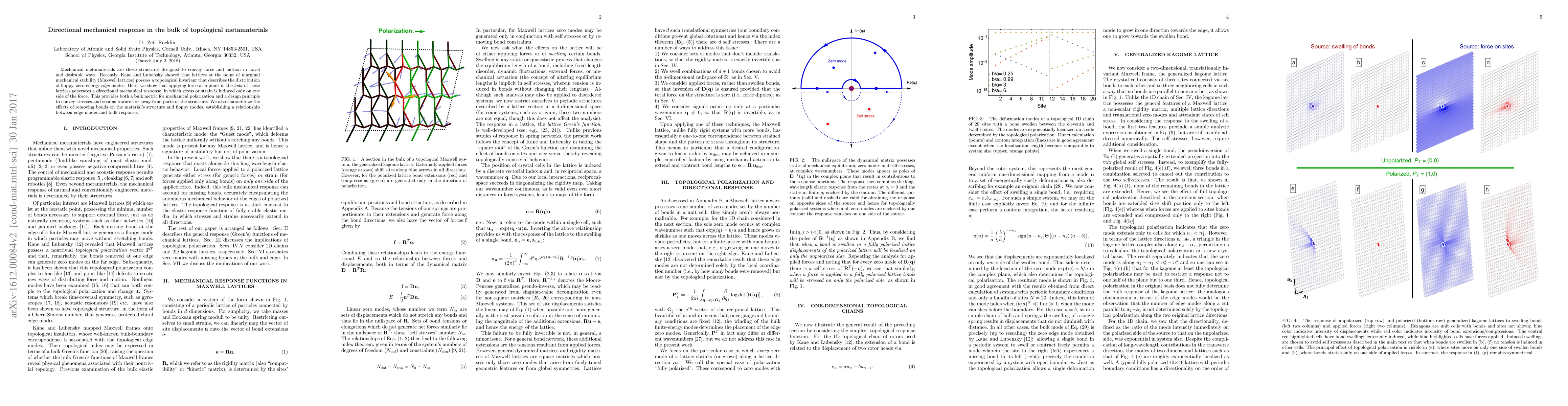 Mechanical metamaterials are those structures designed to convey force and motion in novel and desirable ways. Recently, Kane and Lubensky showed that lattices at the point of marginal mechanical stability (Maxwell lattices) possess a topological invariant that describes the distribution of floppy, zero-energy edge modes. Here, we show that applying force at a point in the bulk of these lattices generates a directional mechanical response, in which stress or strain is induced only on one side of the force. This provides both a bulk metric for mechanical polarization and a design principle to convey stresses and strains towards or away from parts of the structure. We also characterize the effects of removing bonds on the material's structure and floppy modes, establishing a relationship between edge modes and bulk response.