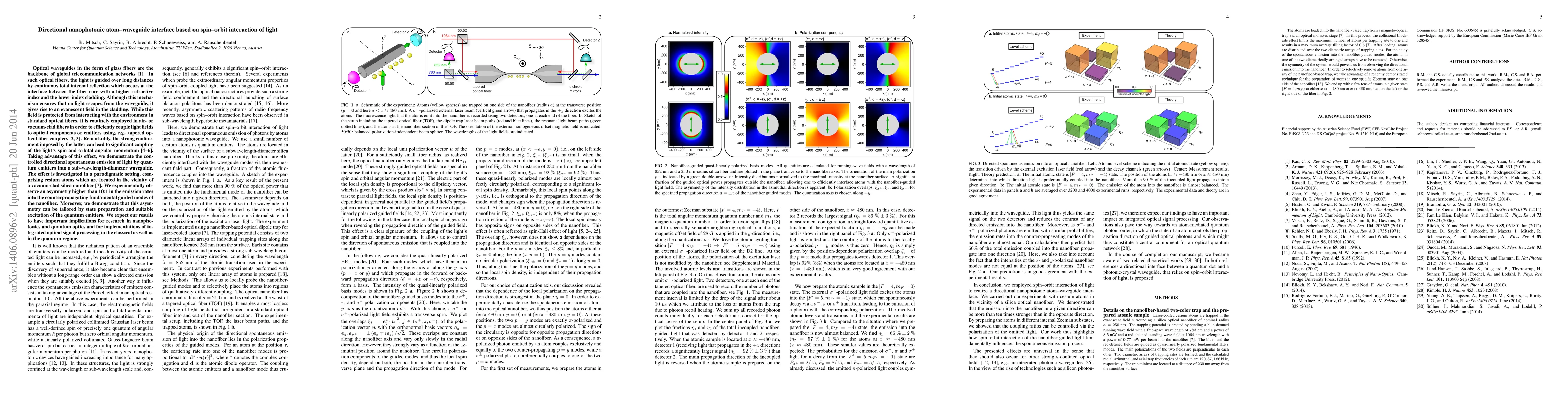 This paper demonstrates controlled directional spontaneous emission of light from quantum emitters into a sub-wavelength-diameter waveguide using spin-orbit interaction. The study shows an asymmetry of over 10:1 in emission rates into counterpropagating modes, which can be tailored by quantum emitter state preparation, with implications for nanophotonics and quantum optics.