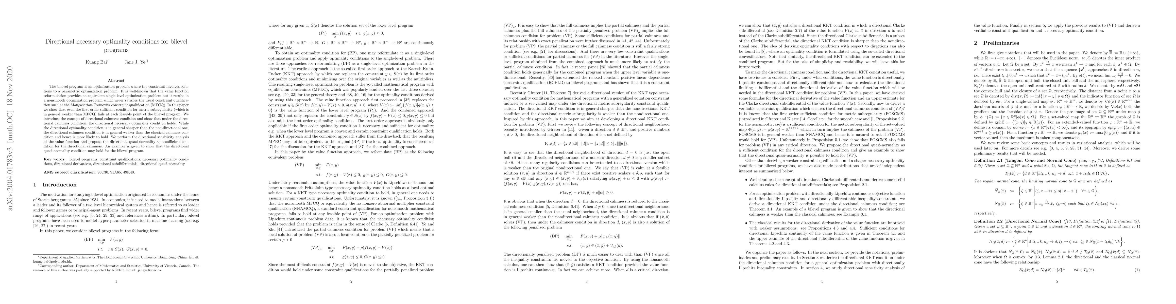 This paper investigates the directional necessary optimality conditions for bilevel programs, highlighting that existing constraint qualifications like MFCQ often fail. It introduces the directional calmness condition under which the directional necessary optimality condition holds, proposing directional quasi-normality as a sufficient condition for this and providing an example to demonstrate its applicability.