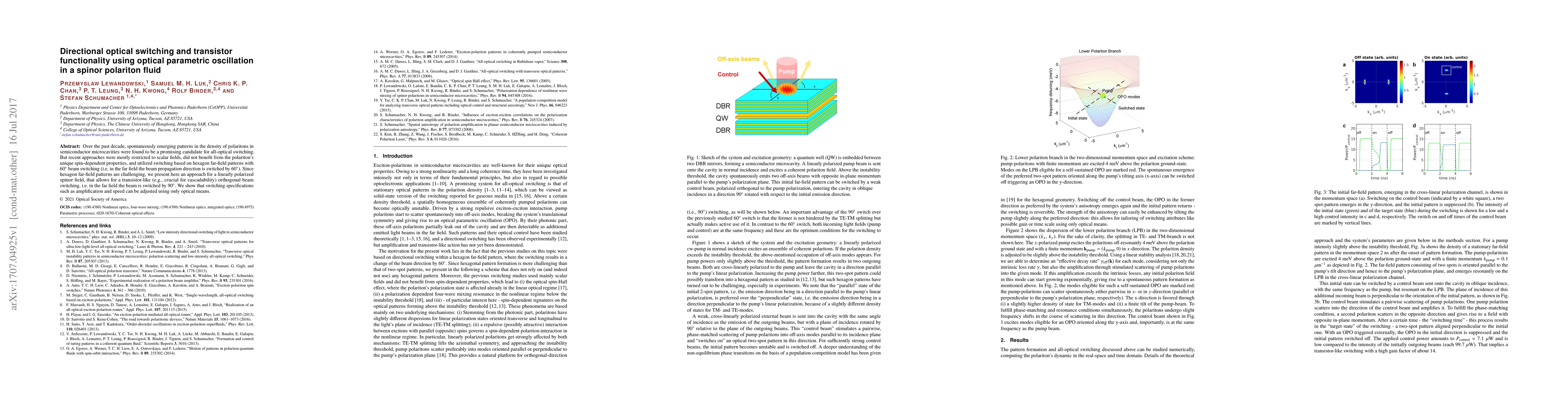 The main technical contribution is the theoretical proposal and analysis of an all-optical 90-degree beam switch based on optical parametric oscillation in a spinor polariton fluid, demonstrating controllable switching attributes using only optical means.