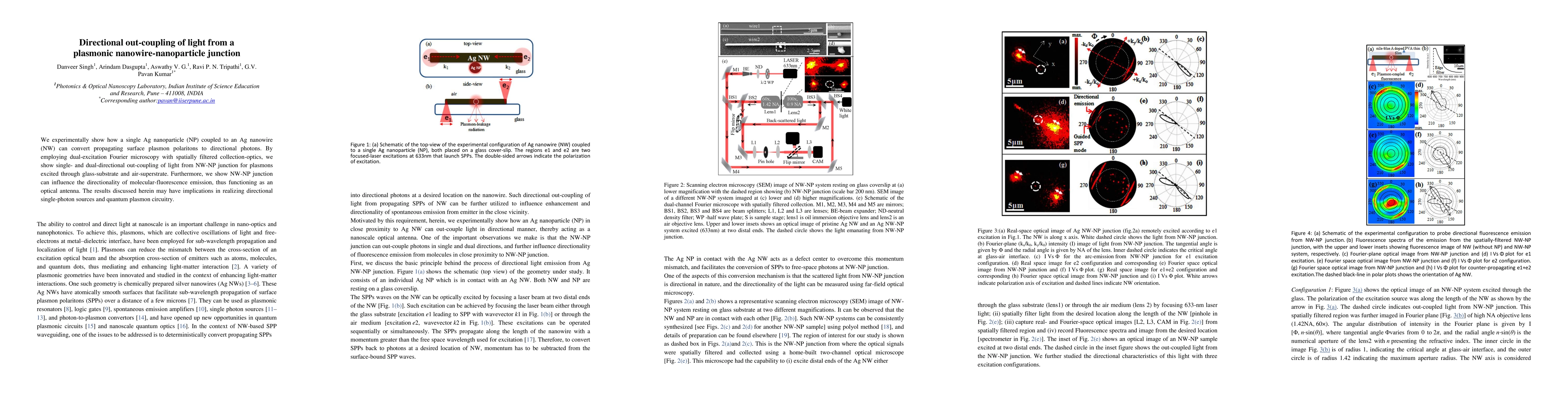We experimentally show how a single Ag nanoparticle (NP) coupled to an Ag nanowire (NW) can convert propagating surface plasmon polaritons to directional photons. By employing dual-excitation Fourier microscopy with spatially filtered collection-optics, we show single- and dual-directional out-coupling of light from NW-NP junction for plasmons excited through glass-substrate and air-superstrate. Furthermore, we show NW-NP junction can influence the directionality of molecular-fluorescence emission, thus functioning as an optical antenna. The results discussed herein may have implications in realizing directional single-photon sources and quantum plasmon circuitry.