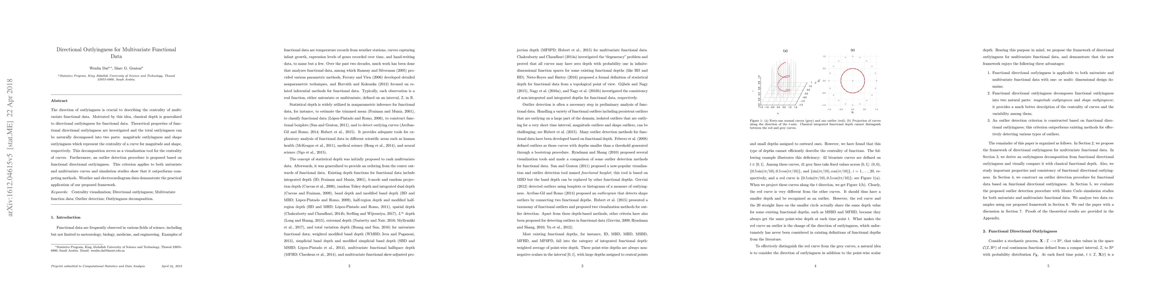 This paper proposes a method for directional outlyingness in multivariate functional data, decomposing total outlyingness into magnitude and shape outlyingness. It introduces an effective outlier detection procedure that outperforms existing methods, validated through simulations and real-world data applications like weather and electrocardiogram datasets.