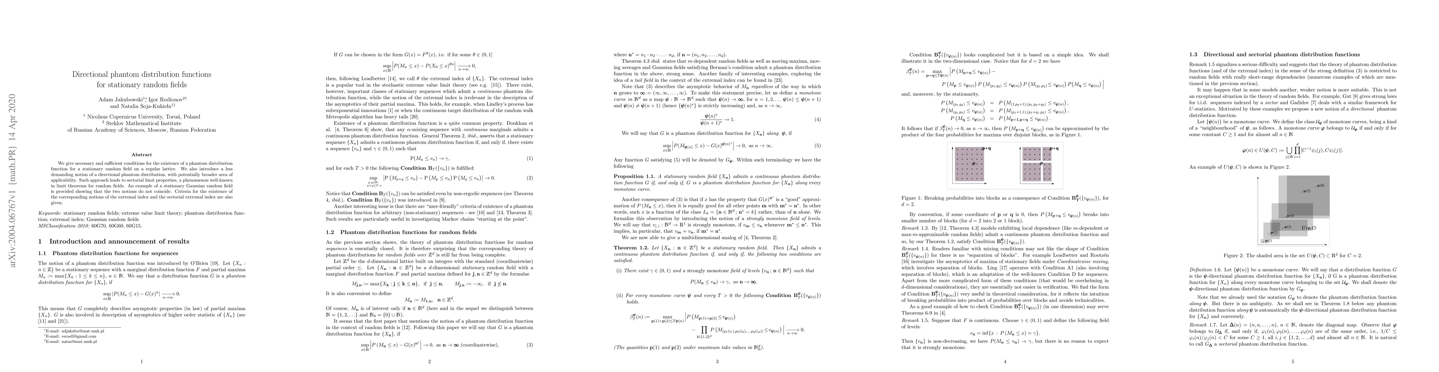 We give necessary and sufficient conditions for the existence of a phantom distribution function for a stationary random field on a regular lattice. We also introduce a less demanding notion of a directional phantom distribution, with potentially broader area of applicability. Such approach leads to sectorial limit properties, a phenomenon well-known in limit theorems for random fields. An example of a stationary Gaussian random field is provided showing that the two notions do not coincide. Criteria for the existence of the corresponding notions of the extremal index and the sectorial extremal index are also given.